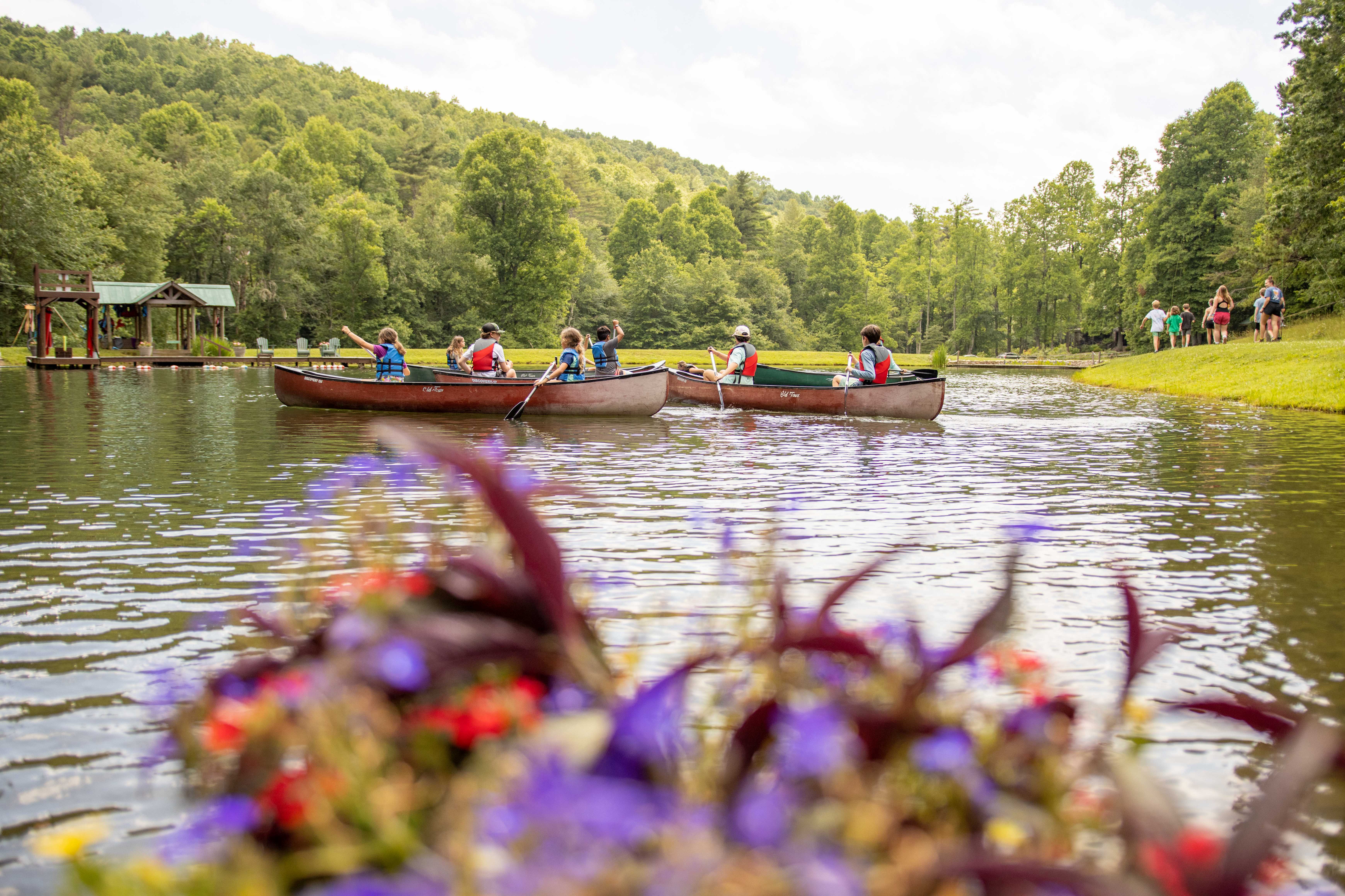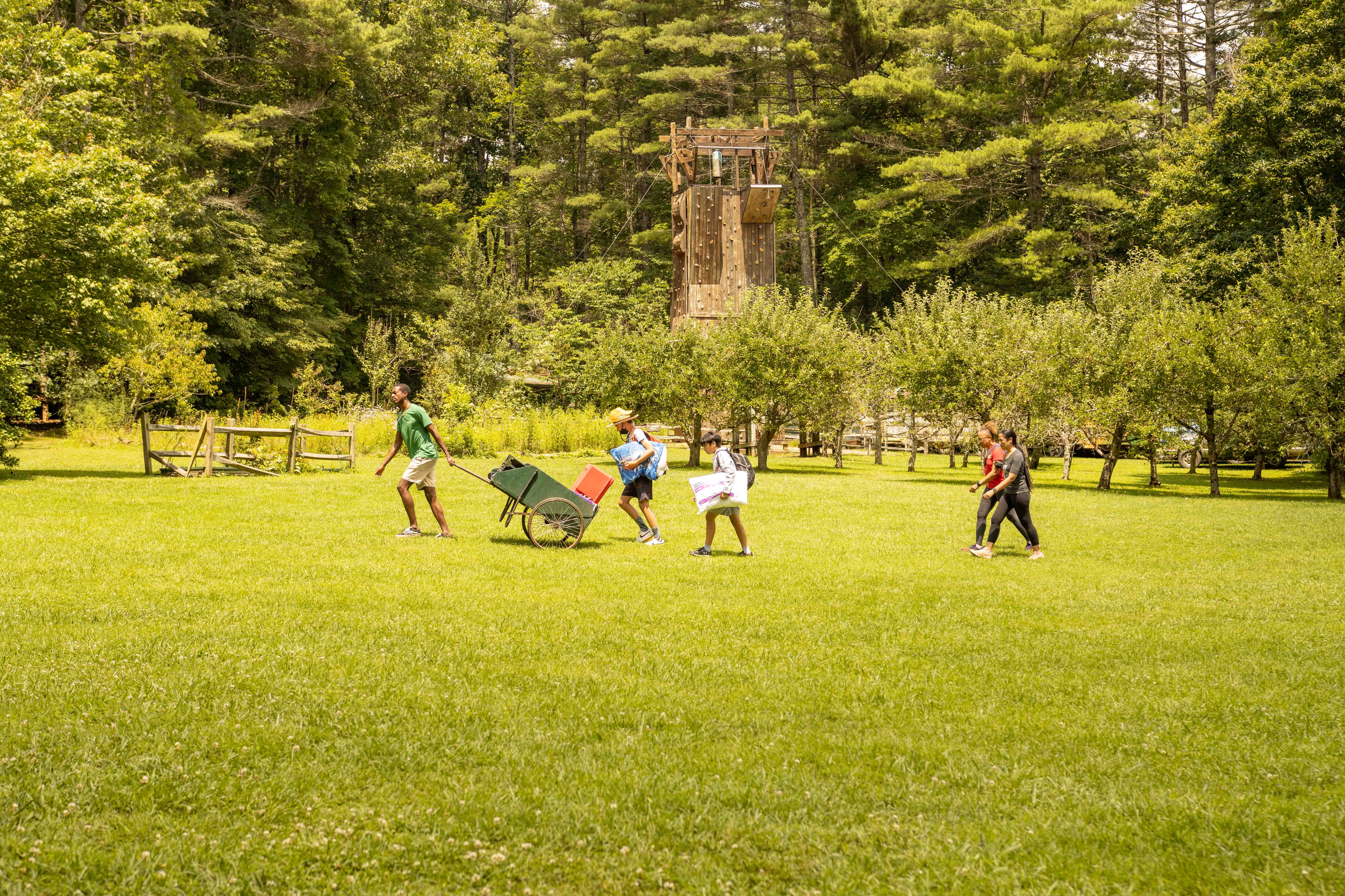 Also within base camp are two spring-fed ponds, large playing fields, stream-side pavilion, organic gardens, an apple orchard and a custom-built climbing tower.