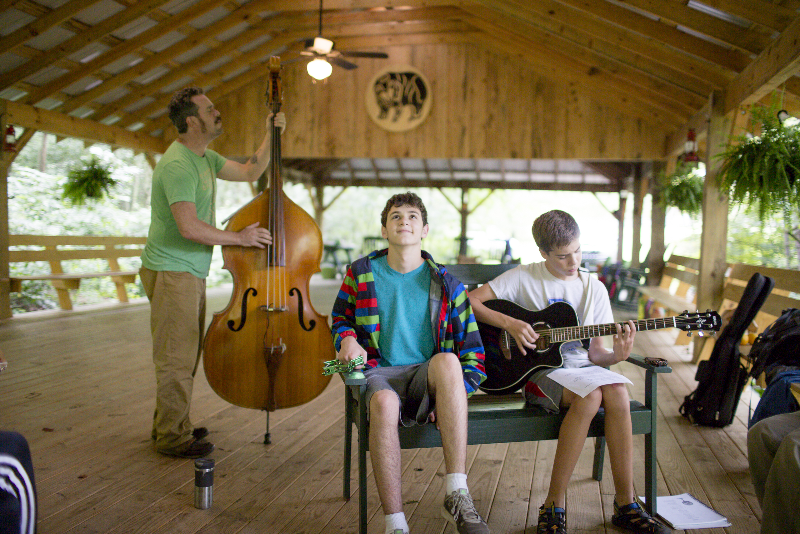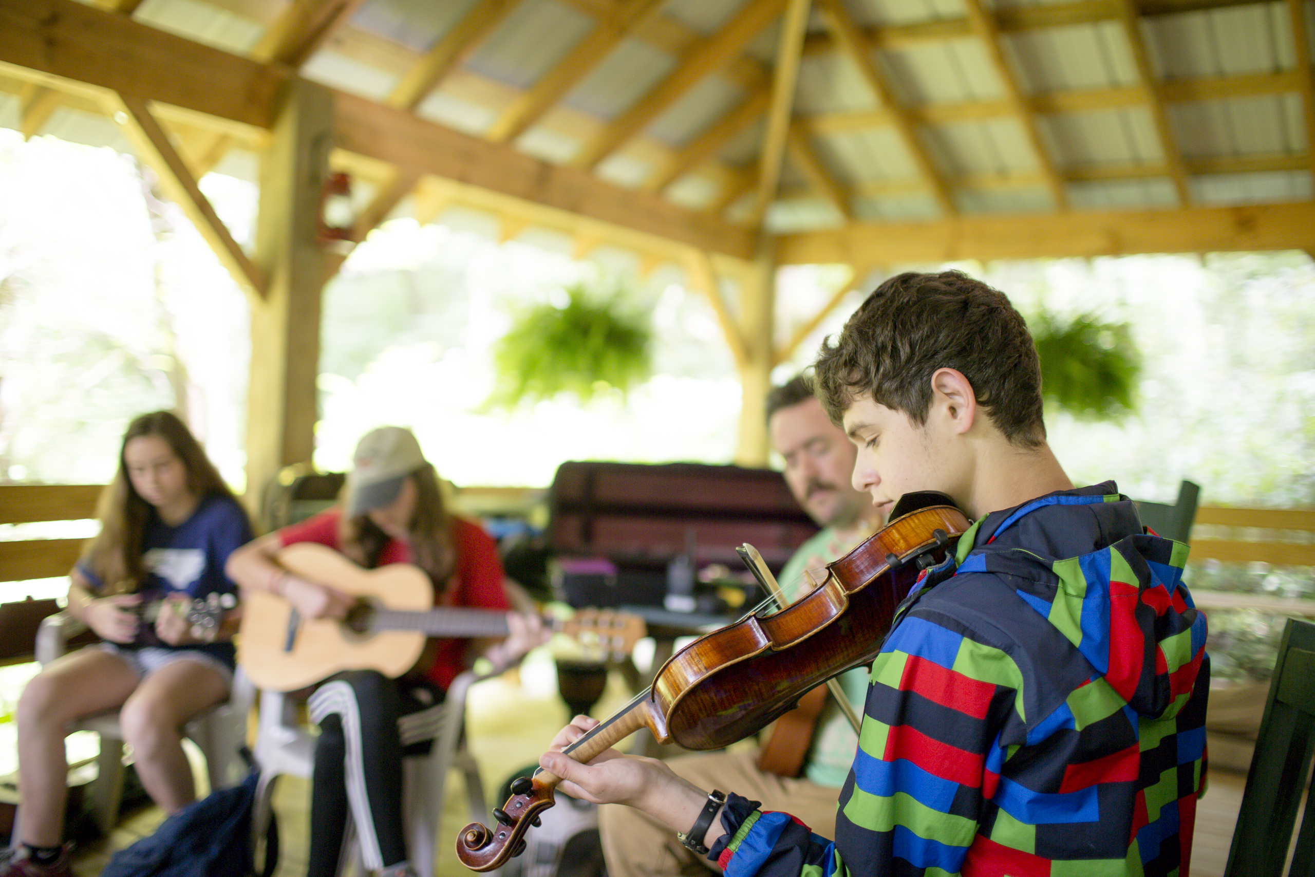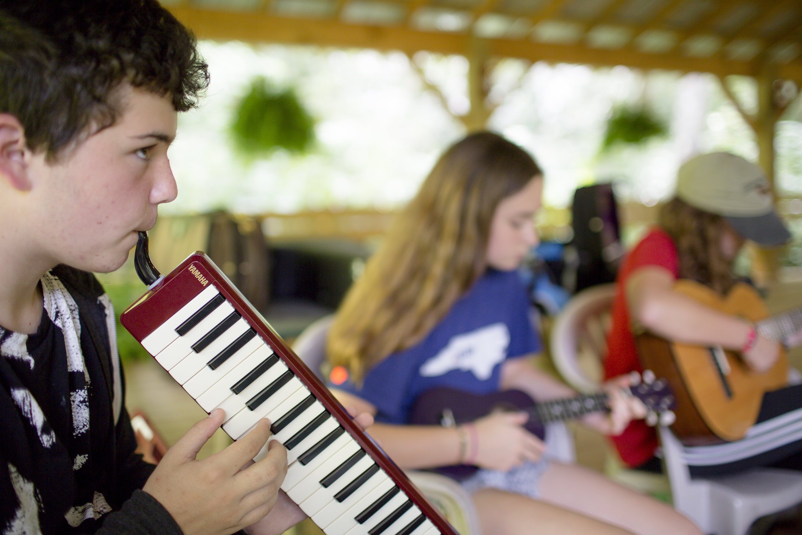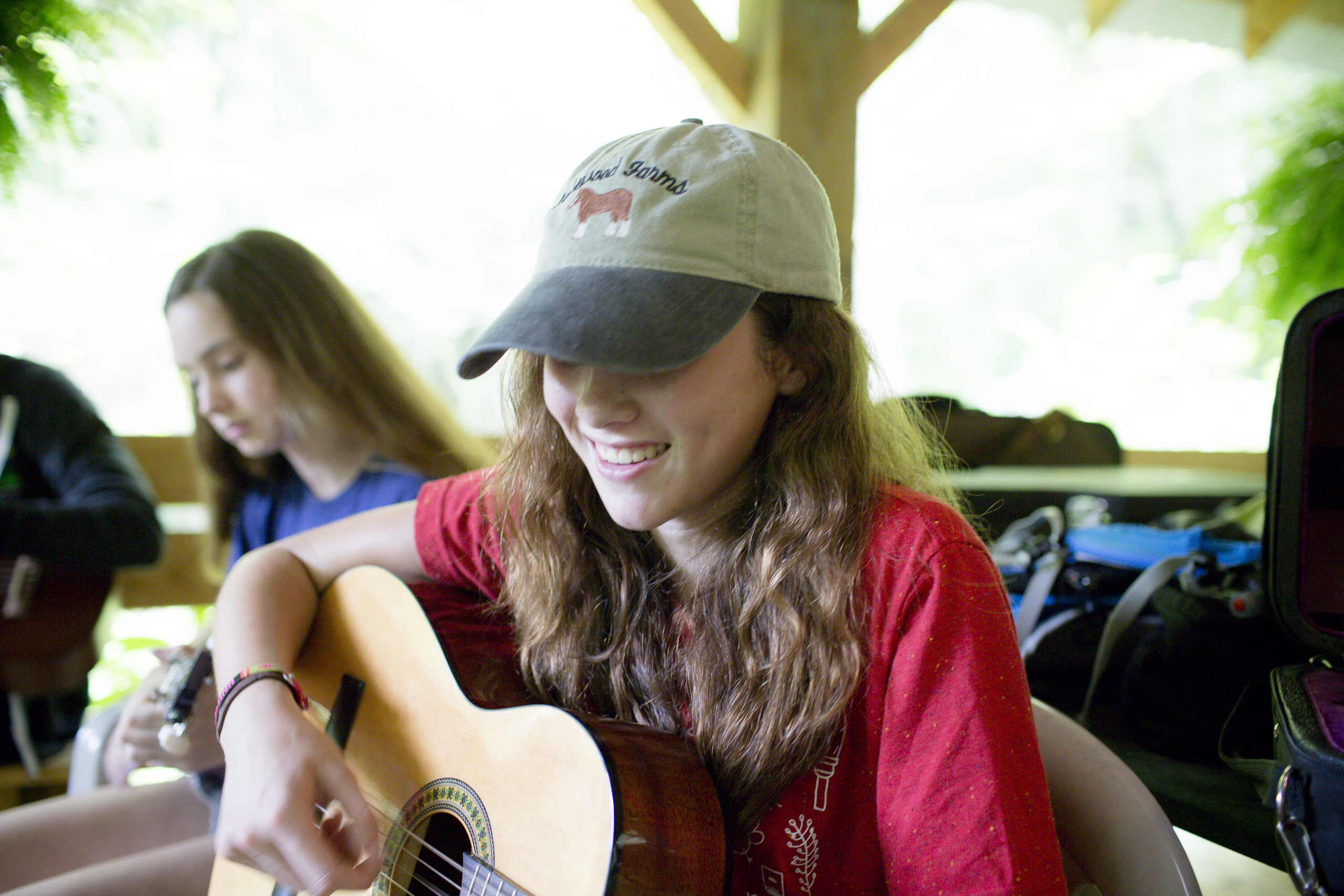 Beginners and seasoned musicians alike are invited join in on guitars, ukueles, or djembes provided here at camp. Feel free to bring your own instrument regardless of your skill level. We want to hear what you have to play as opportunities for performance abound.