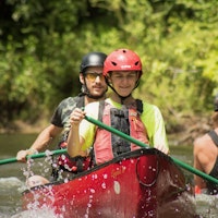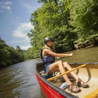 We floated down what is probably the most beautiful stretch of the French Broad River, for about an hour, before eddying out on a small beach, for lunch. Between team leader, Carolyn, grabbing a lamprey out of the water and our campers willingness to get into water to learn proper whitewater swimming methods, it was a day to remember.