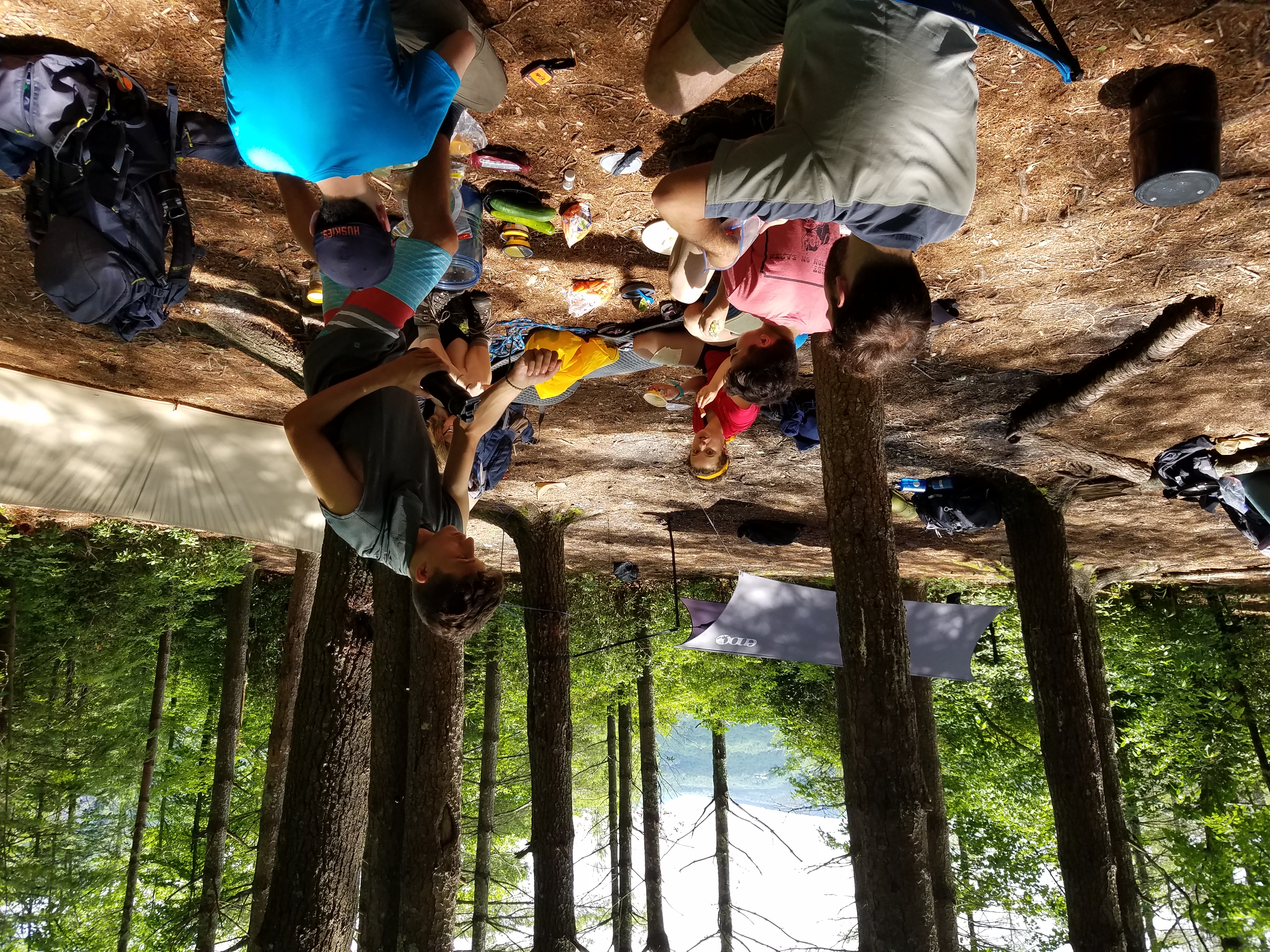 On day three the expeditioners moved camp, away from the security of the shelter. With good weather in the forecast, they had their hopes set on camping atop Tranquility Point. On the way they spotted an unidentified snake, one of the many animals they would encounter that day. Once everyone set up the camp they headed down the trail to enjoy a dip at Schoolhouse Falls–grabbing handfuls of wild blueberries along the way.