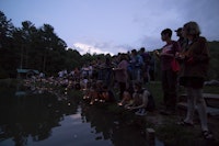 The single most powerful evening of Session 3 was tonight. Closing ceremonies came and went all too fast. We had nearly a quarter of our campers play together, with staff, at the last Upper Council Fire of the session. Following the Green River Ramblers and the walking stick ceremony, we walked to the waterfront, to grab a wish boat and find a spot on the lakeside to release it. The emotions were all over the place tonight, with lots of hysterical laughter and many tears of love.