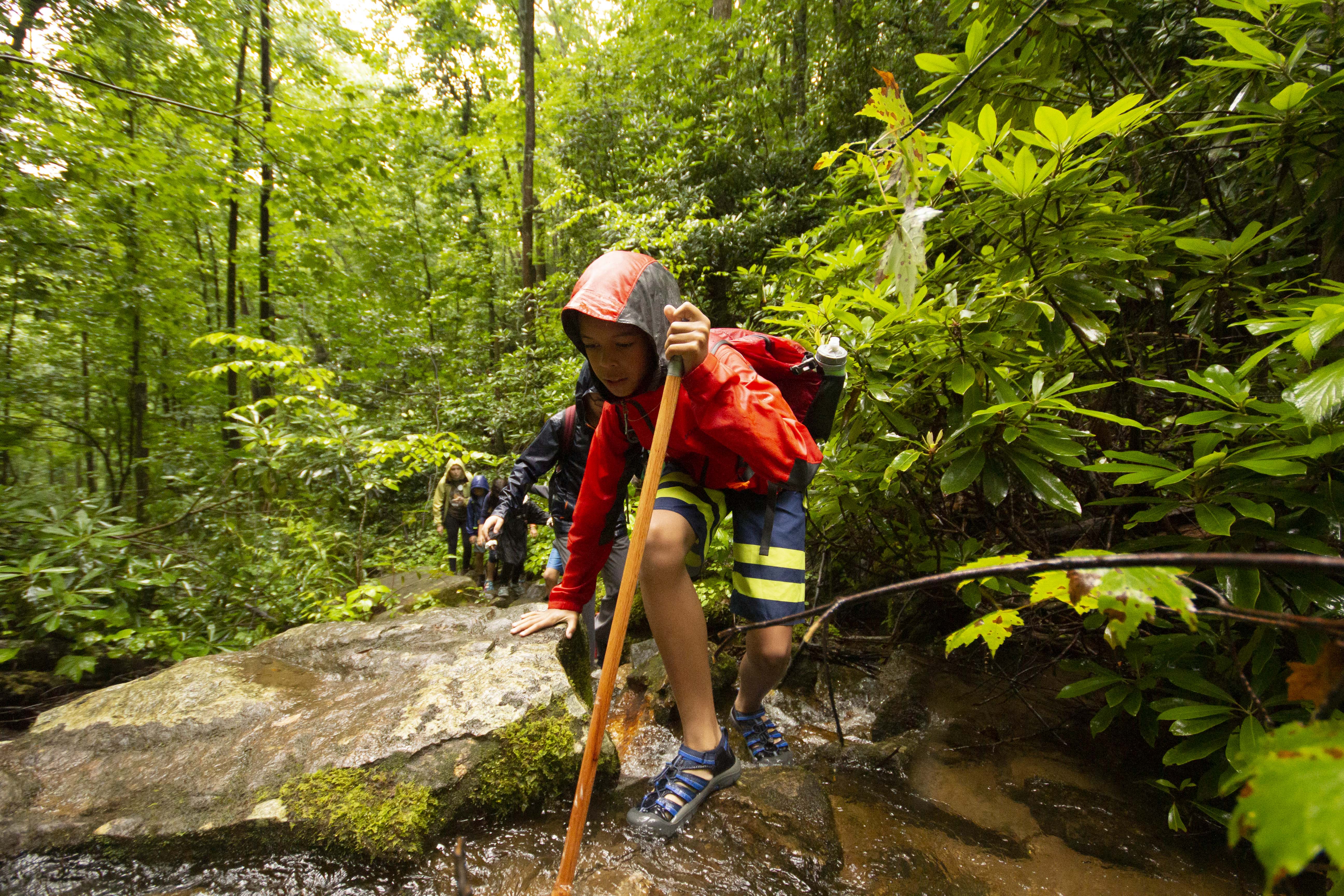 This morning, just as our Mentor Hikes were heading out onto the various trails across the 3,400 acre Preserve, it really started to pour. Garbed in a massive rainbow of raincoats, we all piled into the camp buses and sang our way to each respective hike. Although the beginning of our sauntering through the woods was full of precipitation, we all hiked with great conversation and wonder. The curiosity for all things nature is, in itself, quite joyous. To share in these experiences with each other and marvel together at the world we get to explore, in so many ways, is priceless.