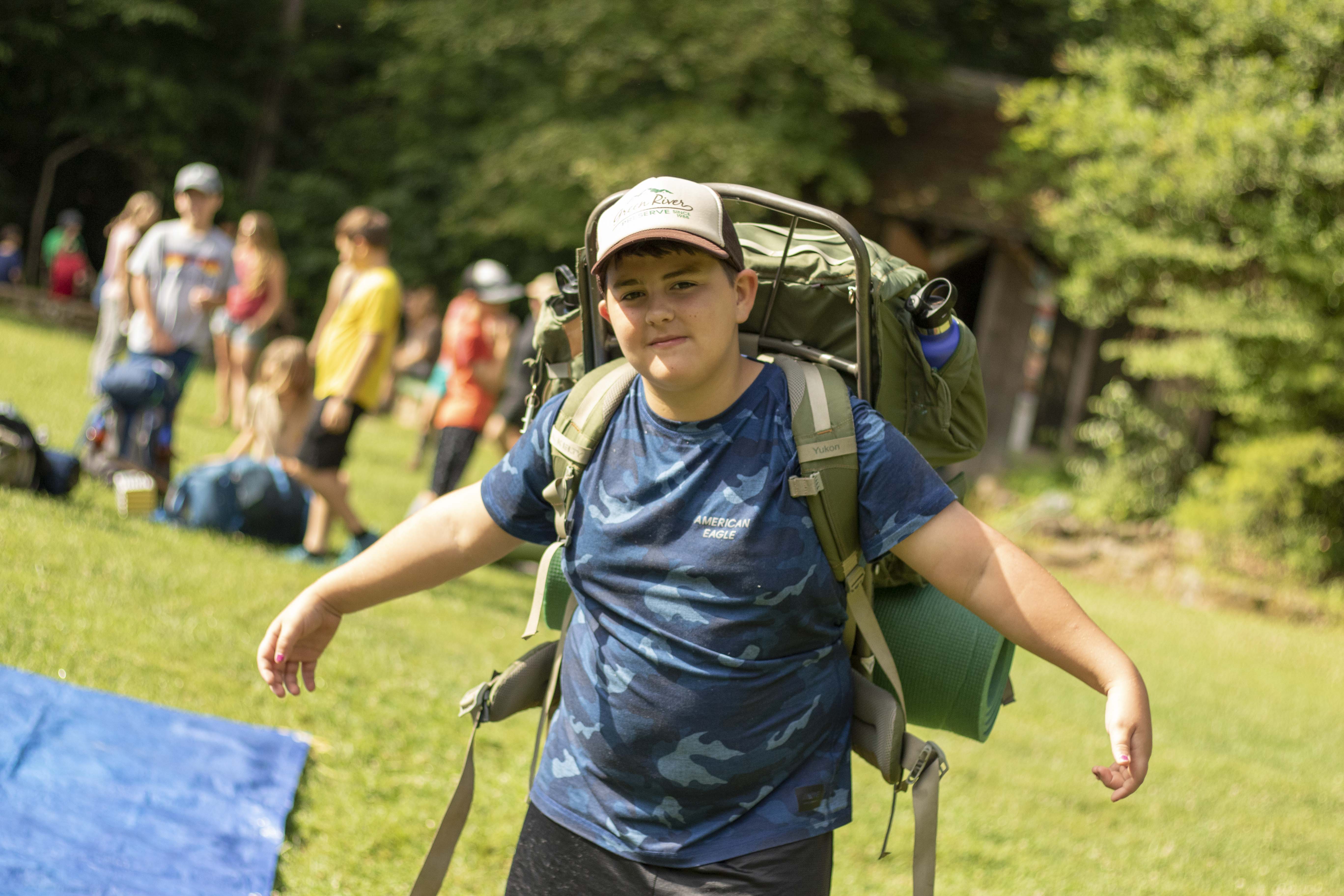 A seemingly endless stream of campers filed into a sun baked back field, earlier this morning, to pack up for the journey. Each of eight backpacking groups scattered themselves around the field to split up camping equipment, cooking gear and all other necessities for a successful excursion into the wild. The adventure of Campout brings us to various locations spread out around the entire Preserve. Campers will cook for themselves, make shelters, gather fresh water to purify, and they’ll even get to clean up after meals! It’s really about the experience of being in the woods with friends, to learn what it means to sleep under the stars(or the storm clouds) and what it’s like to really put yourself in nature. Counselors and Mentors are there to guide them along, but for the most part, the kids will be running the show. This gives each camper a chance to shine, to offer skills learned during Activities or from prior learning. Some campers will form units to complete tasks while others might work best alone. After camp is set up and meals are over, there will be games, time to relax and enjoy the moment and maybe even a round of s’mores before bedtime. Either way, it’s going to be a blast and I’m sure there will be many stories told upon their return!