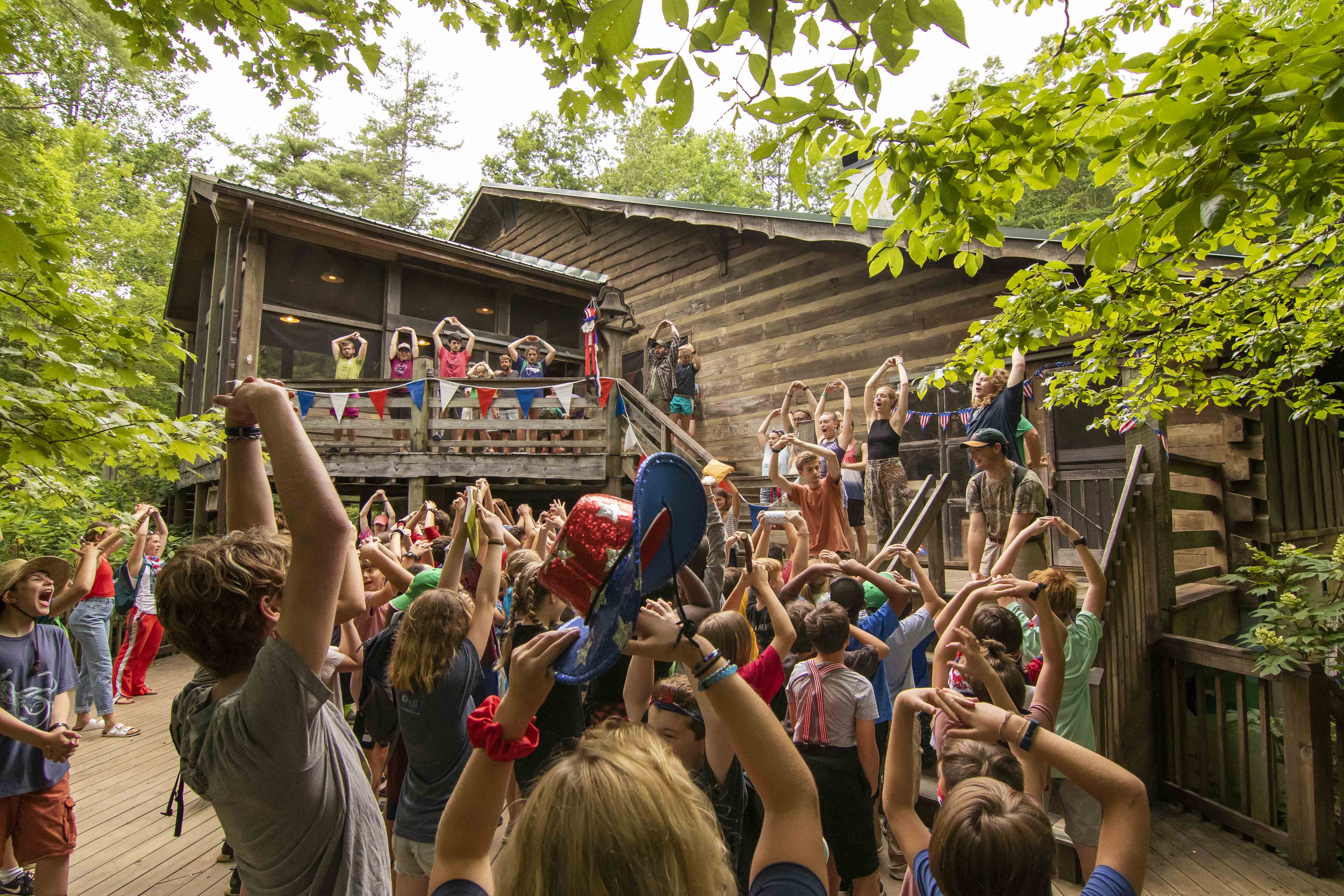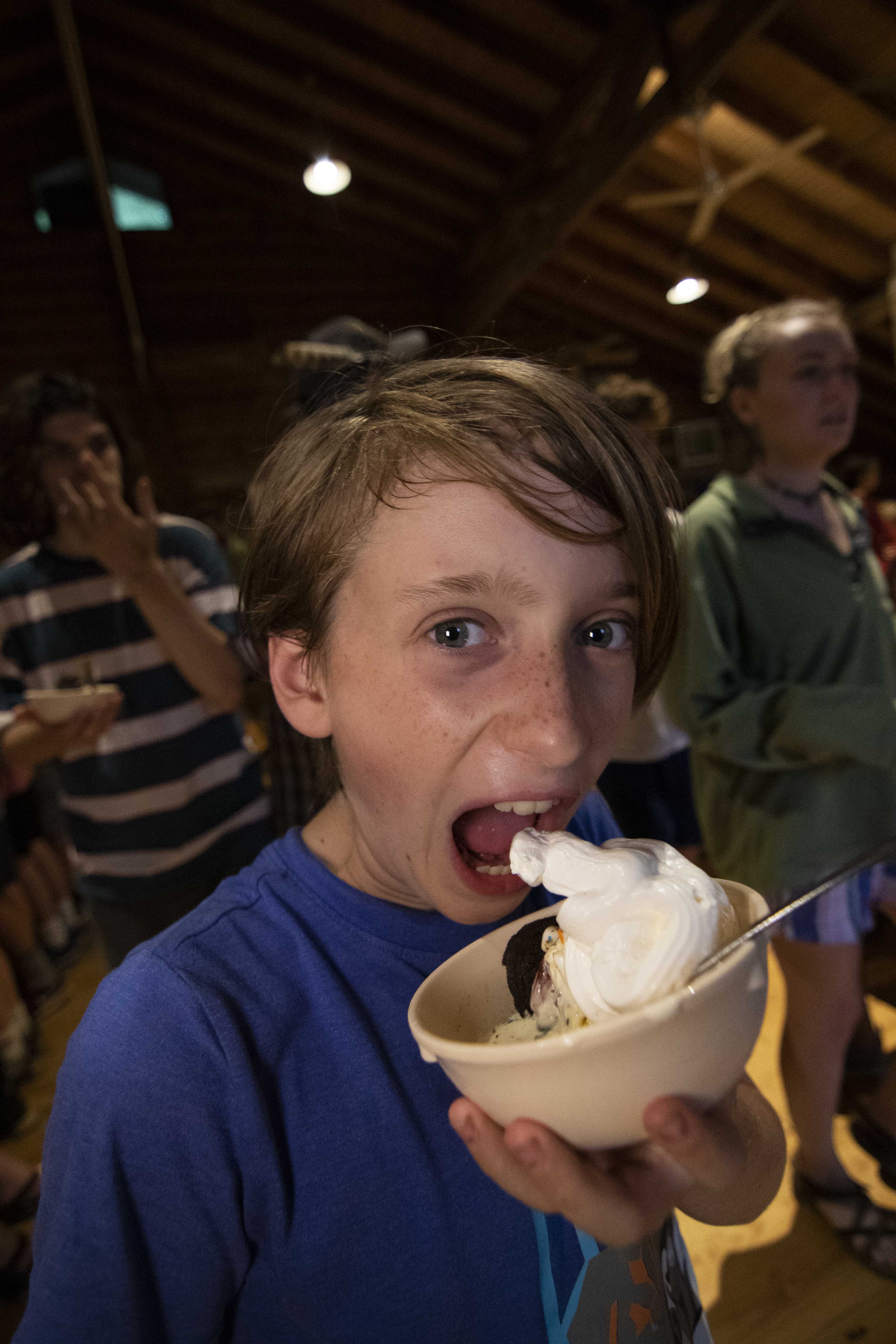 Tonight we found ourselves celebrating Independence Day. Since July 4th happened to be the day before Campout, we didn’t have the chance to stay up late and enjoy it. After dinner, we ate mounds of ice cream until our sugary hearts were were bouncing off the walls–in case you didn’t know, we got a Grand Slam! Then we made our way to the Front Field for some slip n’ slide action and basically an extension of Free-Time. Next, for our grand finale, we sent up 15 American Flag-themed sky lanterns–one for each cabin–into the oncoming night. The magic continues…