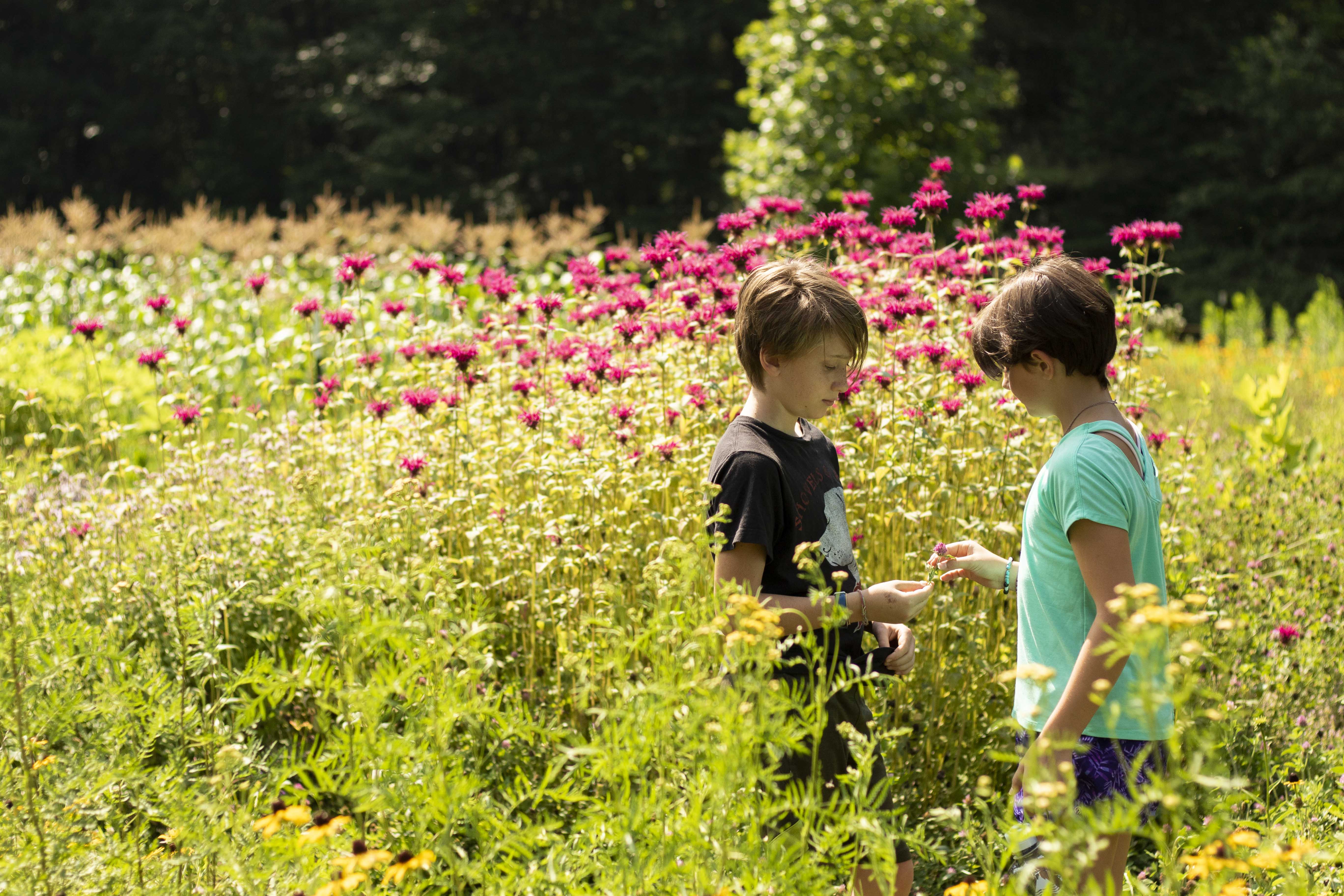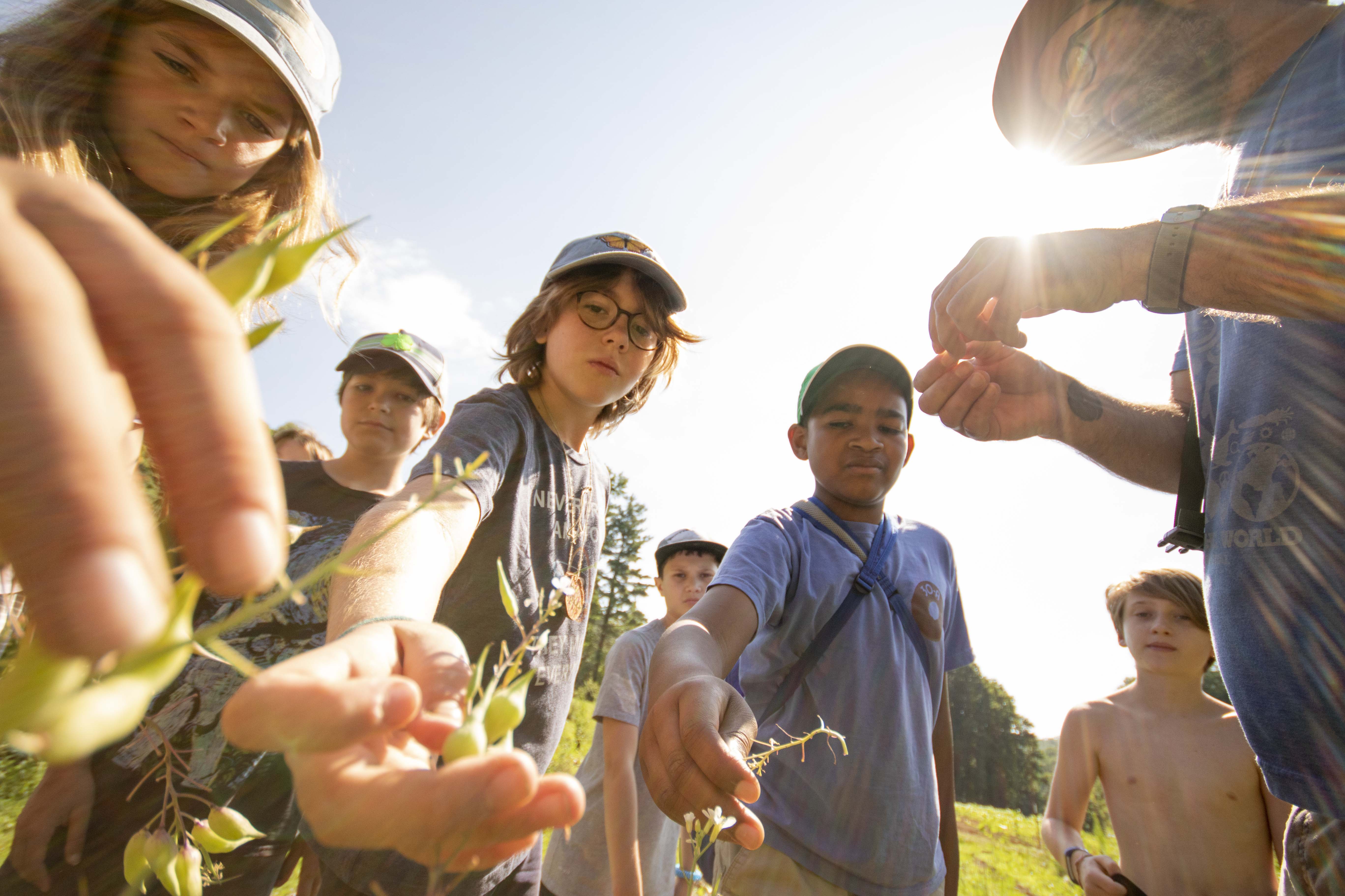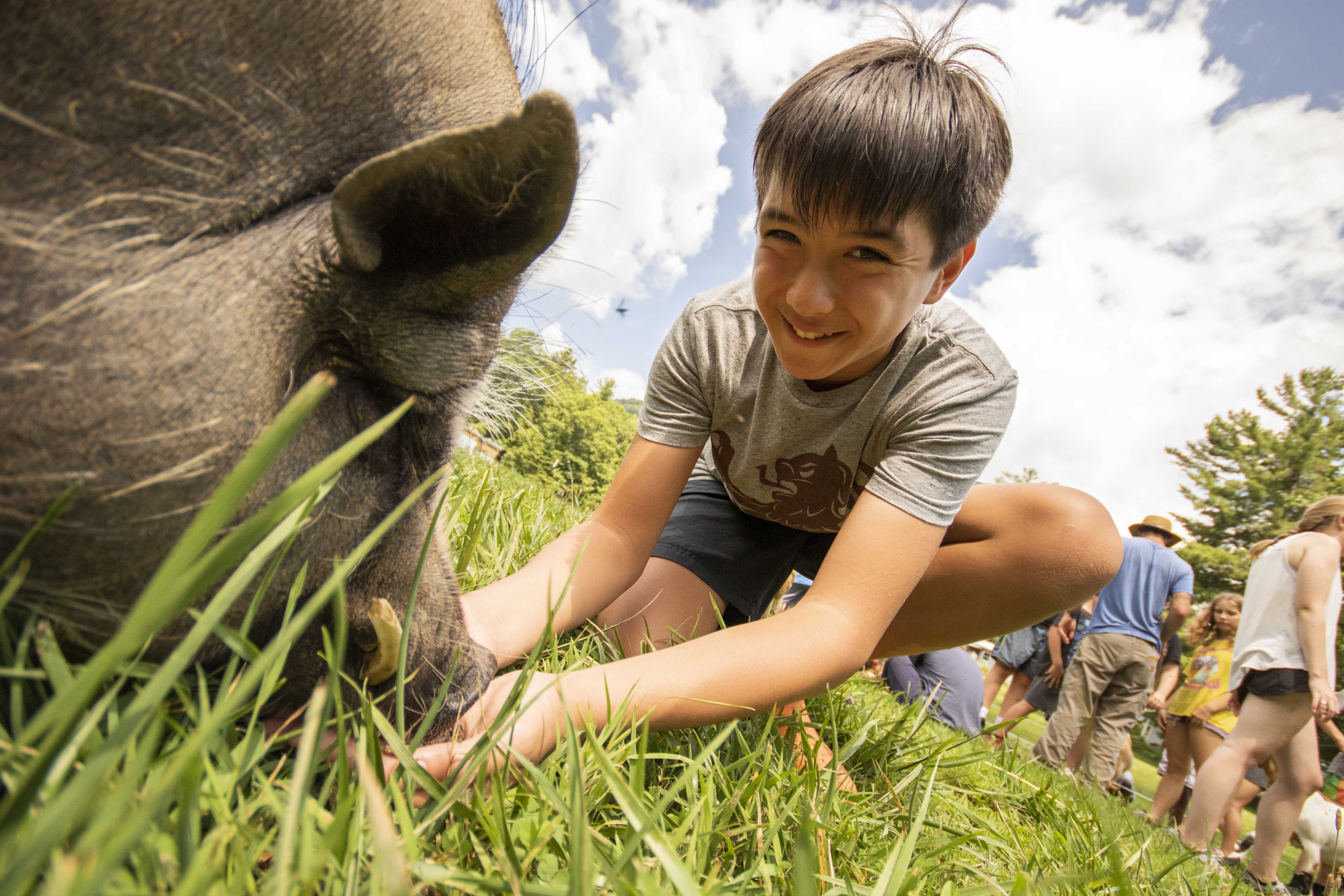 Today, we ventured out into the heat of the summer sun, to enjoy some fresh herbs, green beans and “wizard fingers” Who knew wizard fingers were so tasty and nutritious? After a stroll to visit “Cobba the Hut,” one of the Farm’s handmade pizza ovens(and also home to hundreds of white bees), we made our way through the farm, stopping here and there to absorb knowledge and wisdom from Farmer Phil and the surrounding landscape that he and Farmer Rachel have built over the last 7 years. It’s easy to smile and laugh after Phil tells us that there once was a Camper who just happened to jest, “where are all the exploding plants?” Well, little did that Camper know that Farmer Phil had just that exact plant. They by no means catch fire, but there are a few different species that spread their seeds in what looks like a small scale explosion, when slightly squeezed. So much to learn! For the grande finale, we found ourselves rubbing bellies of tiny pot-belly pigs and feeding what seemed like an endless stream of hungry goats. Beyond the adventures of the Farm, what’s truly inspiring is the work that goes into such an endeavor. There are rows upon rows of fresh crops, an orchard with apples, blueberries and even pink lemonade blueberries. The barnyards features a plethora of goats, pigs and chickens. Did I mention the honey bees? Among the hundreds of natural pollinators that live in this part of North Carolina, the GRP Farm also has a thriving honey bee population, which helps all of the plants successfully reproduce, year after year. There’s much, much more that the Farm has to offer, but for now, check out the photos from today and dreams of flowers, honey and fresh veggies, by the handful!