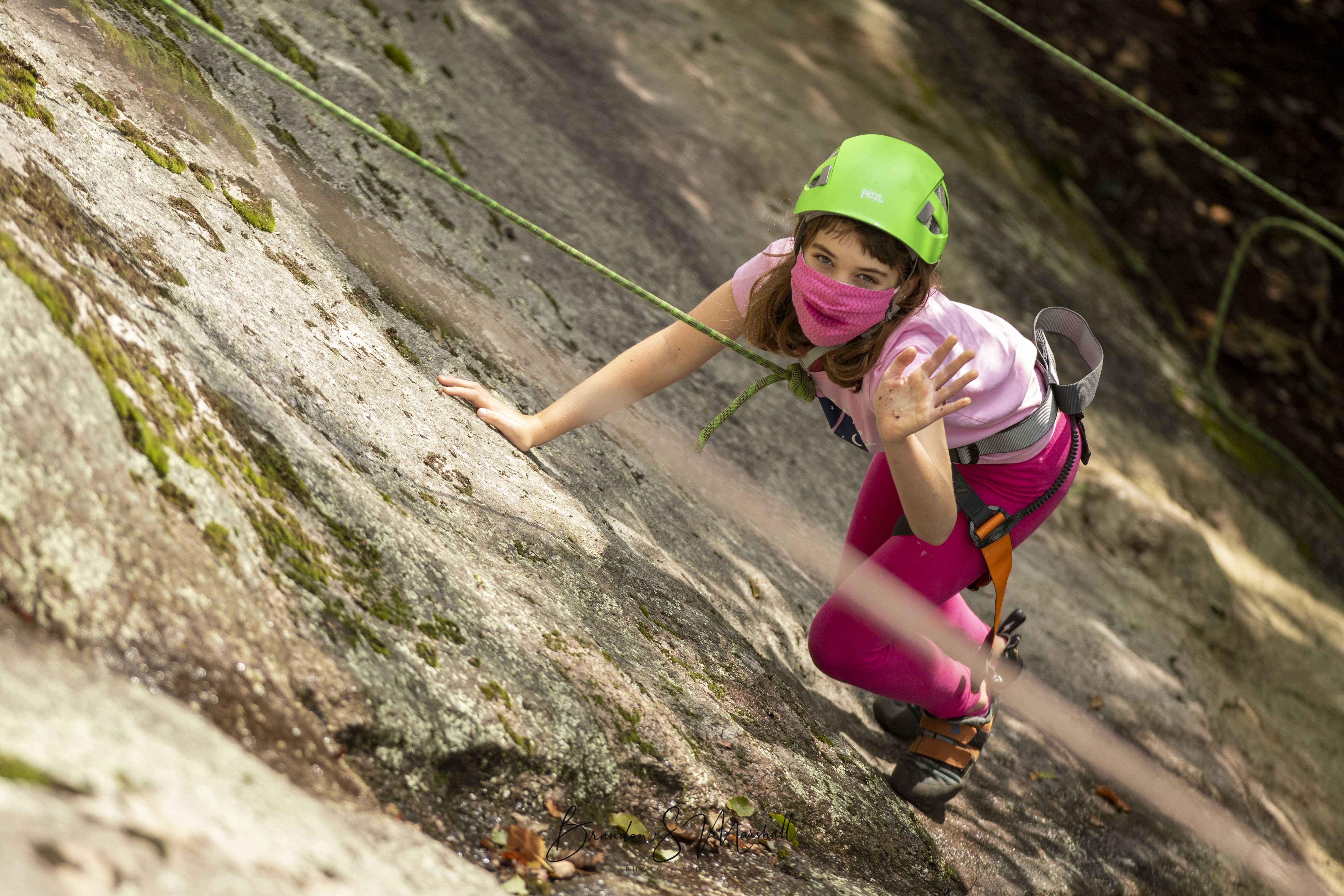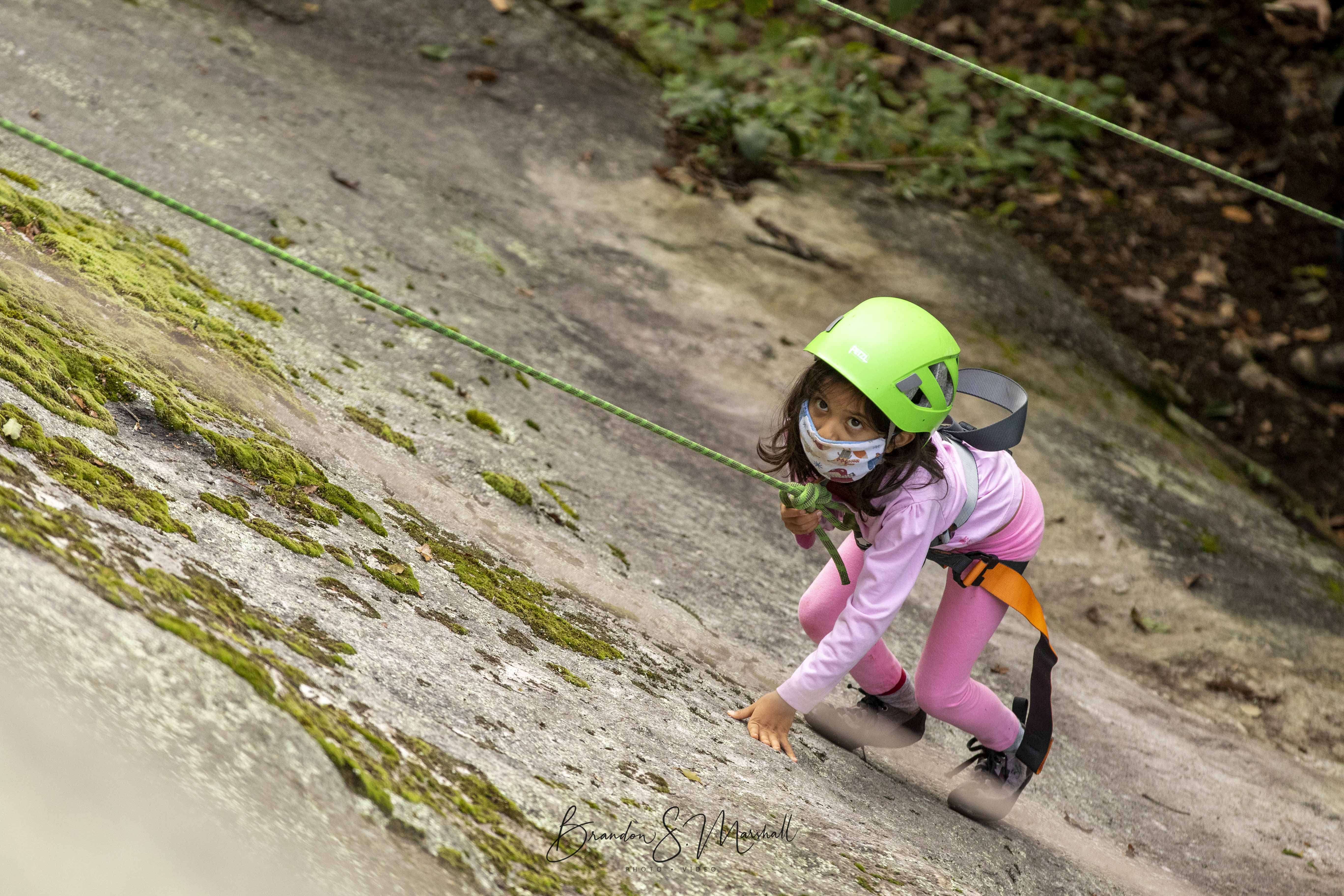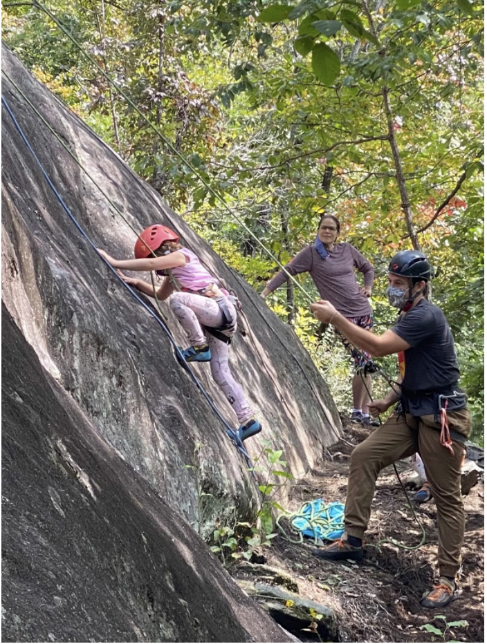 Next door neighbors, best friends, and bubble-mates Emma, Lucy, Indraa, and Nabha joined together over the weekend for their first outdoor adventure together, climbing at Bear Rock with Green River Preserve and Mighty Boots (along with their families). As a returning camper, Emma was excited to share a little bit of camp with her sister and best friends. The day had all the elements of a perfect adventure: challenge, growth, and reward.