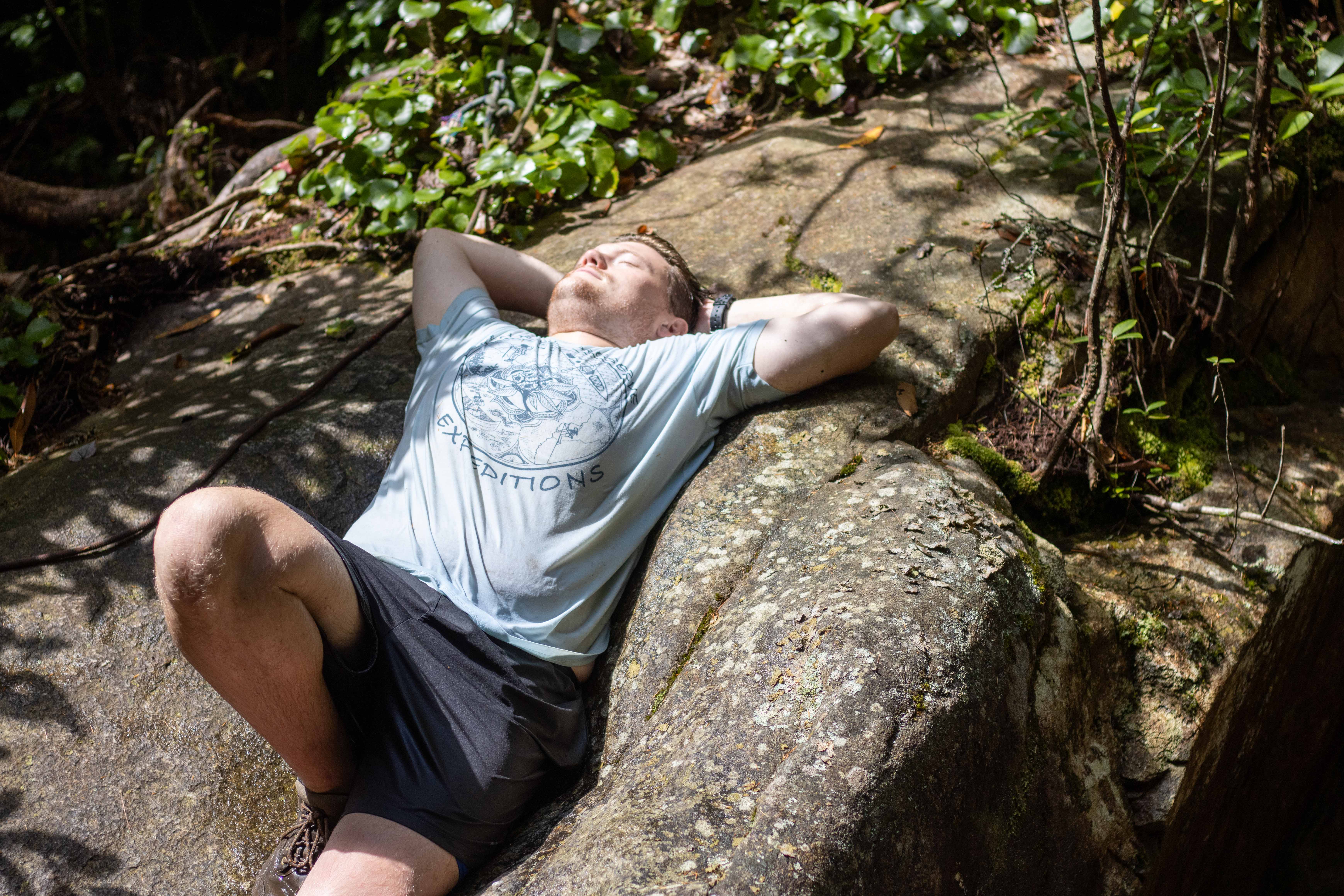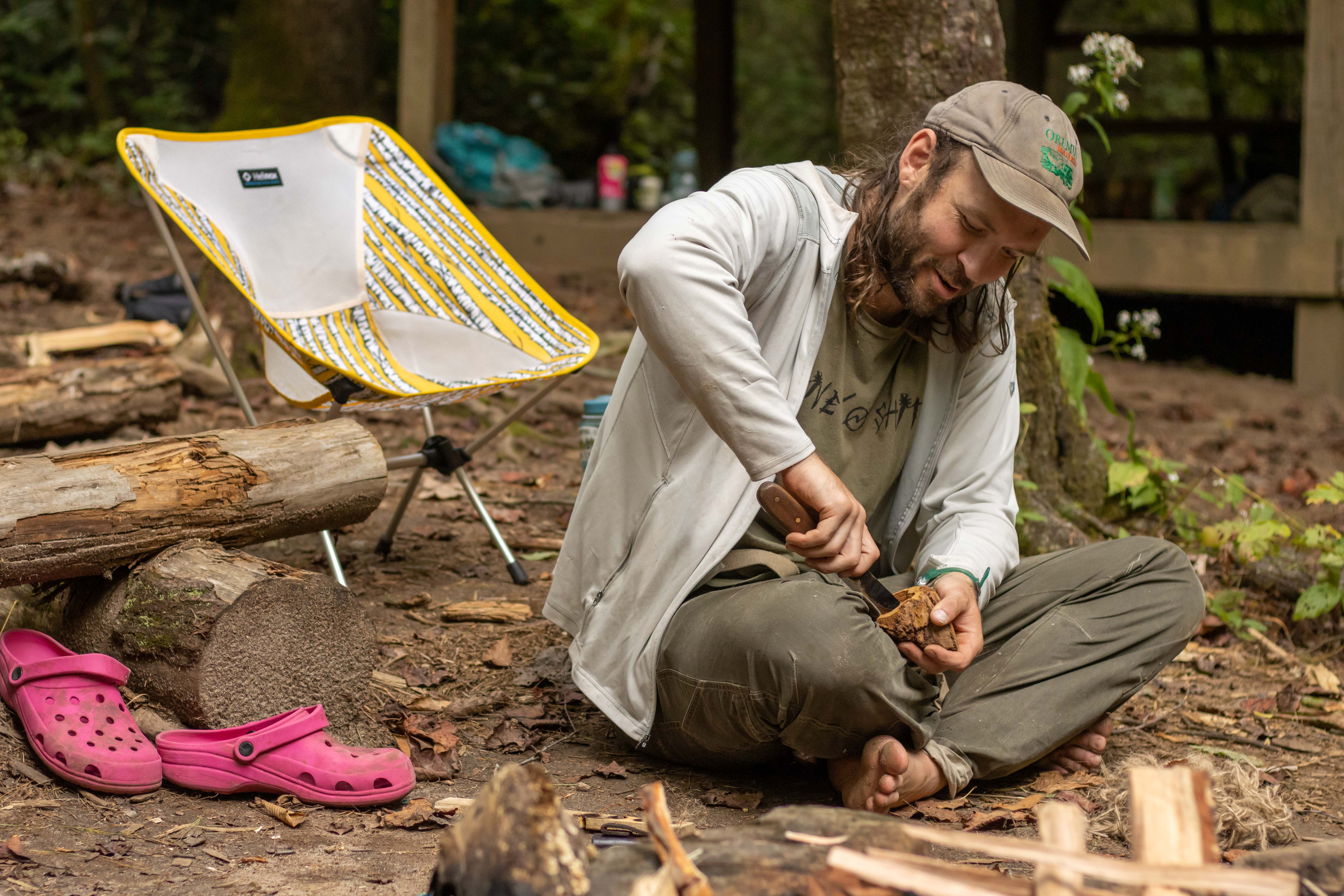 With the unusual warmth of the season, we’ve also taken the opportunity to explore the Preserve and soak in the magic. Most recently, the idea to make cheesesteaks over a fire at Prayer Rock shelter was most assuredly put into action. Jace got the fire going with a bow drill and Sam crisped the buns in aluminum foil and fried up some shredded steak, onions, and peppers on a small skillet over the flames.