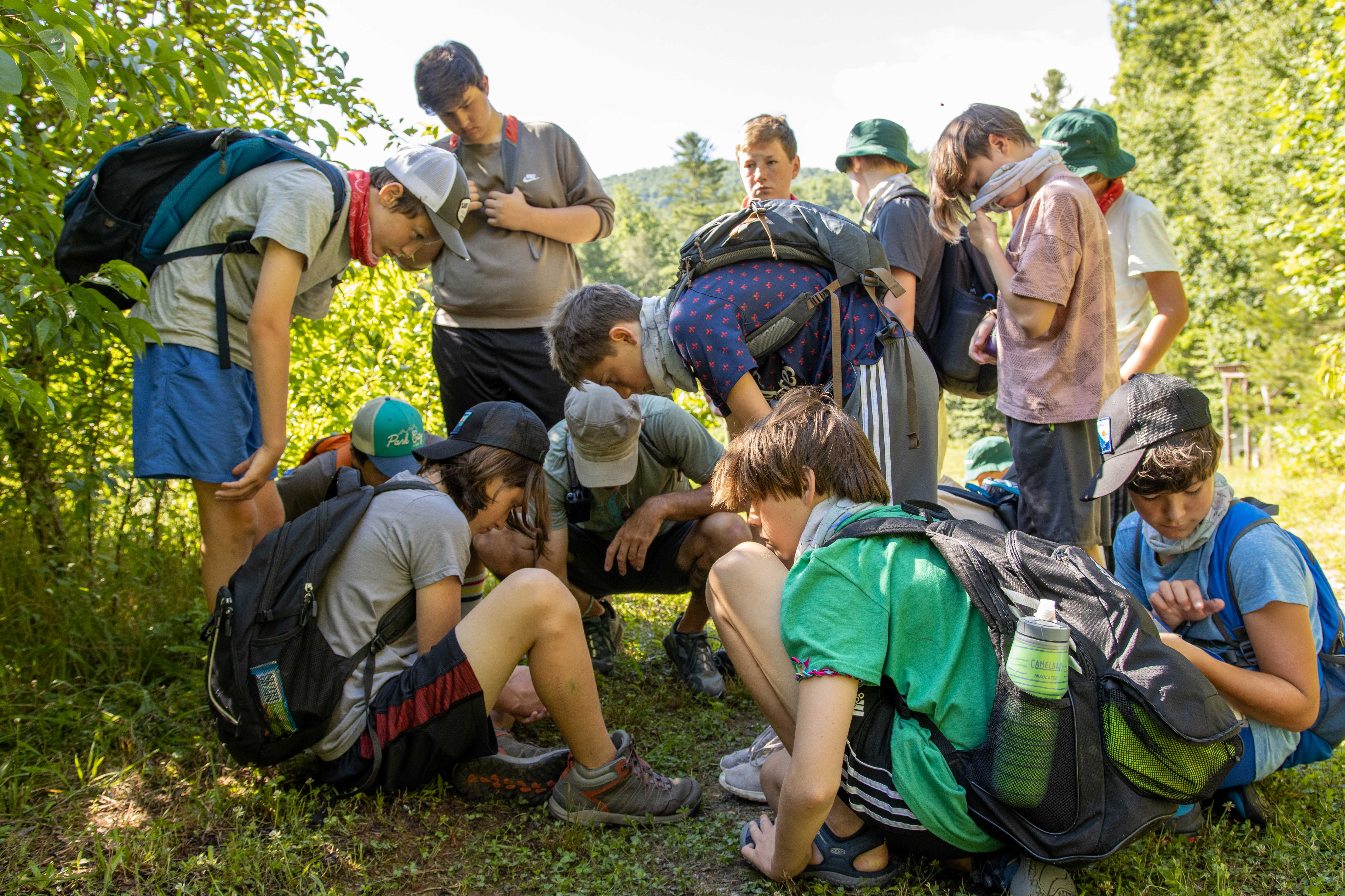 It is on mentor hikes and activities that you will learn the difference between the three-needled red pine and the five-needle white pine. You will discover the delicious dimension of sourwood, wild blackberries, wild blueberries, wild cucumber, and so much more. You will learn about mycelium, that fantastic fungal universe that powers the forest with a complex network of communication. You will learn about the snakes on the preserve, the salamanders on the preserve, the fish on the preserve. You will learn about Hemlocks and Chestnuts, Pine and Locusts, Tulip Popplers and Frasier Magnolias. You will learn how to make cordage or small nets in the pioneer cabin, you will learn how to safely and accurately fire arrows in archery, you will learn how to back cast and fight a fish in fly fishing, you will learn what a t-grip is in canoeing, you will learn how to use nature to make art in nature art. There is always so much to learn, so dive in.