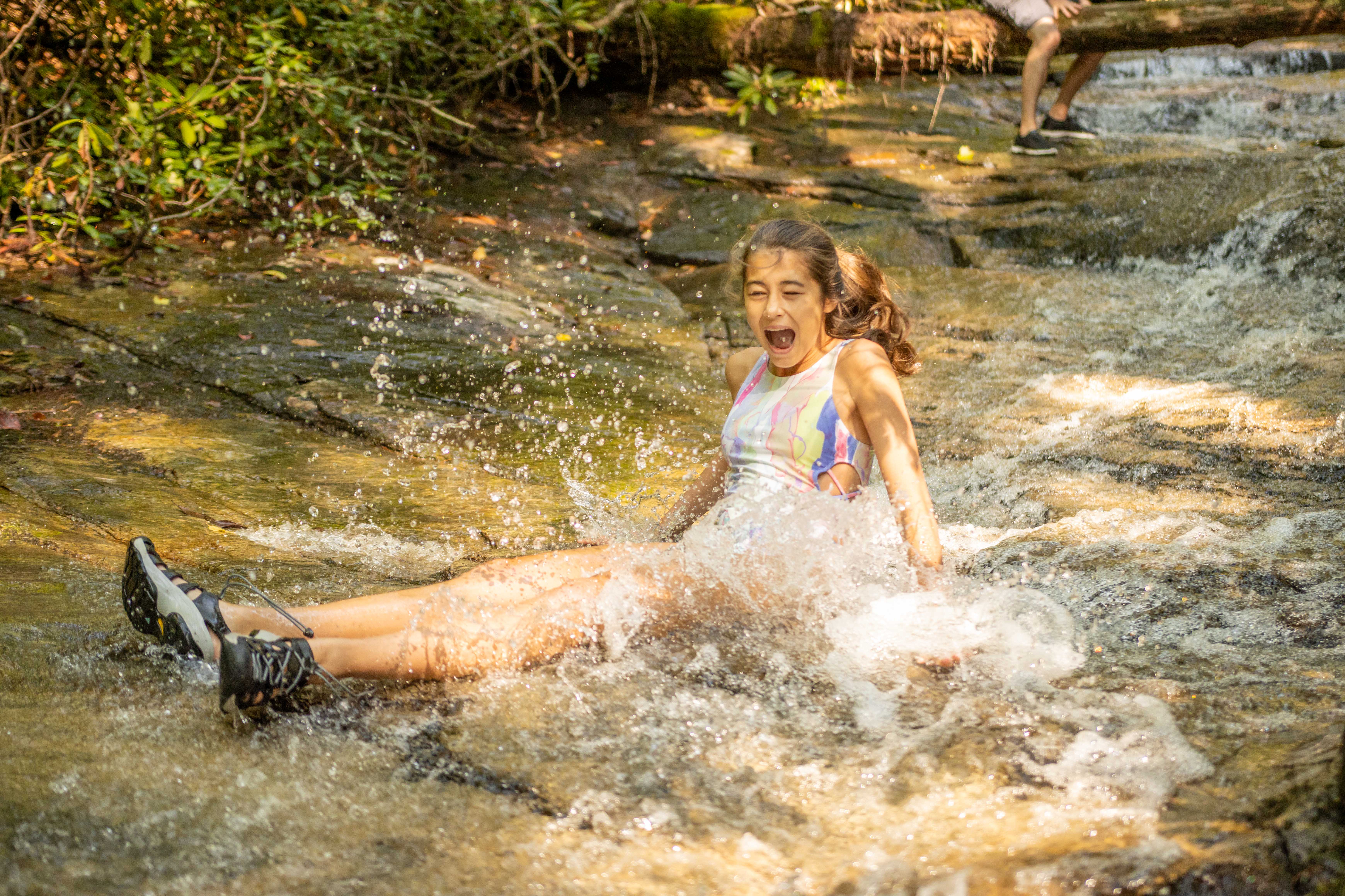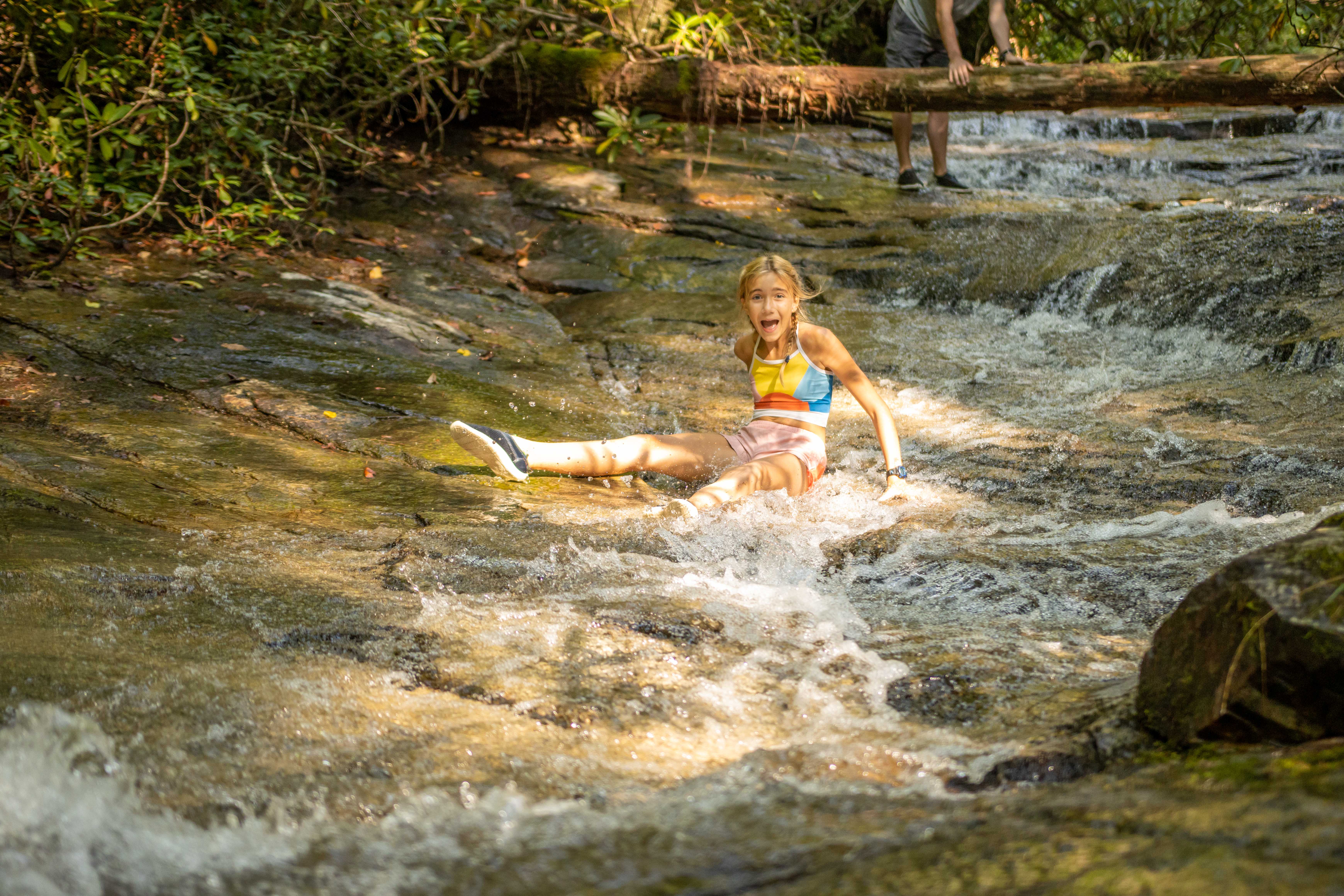 The moments captured this morning were some of our favorite shots of the summer. The water slide was running super fast and the late summer sun lit up Uncle’s Falls perfectly. Plus we had the added bonus of a crew full of stoked Campers and Staff, ready to take the plunge!