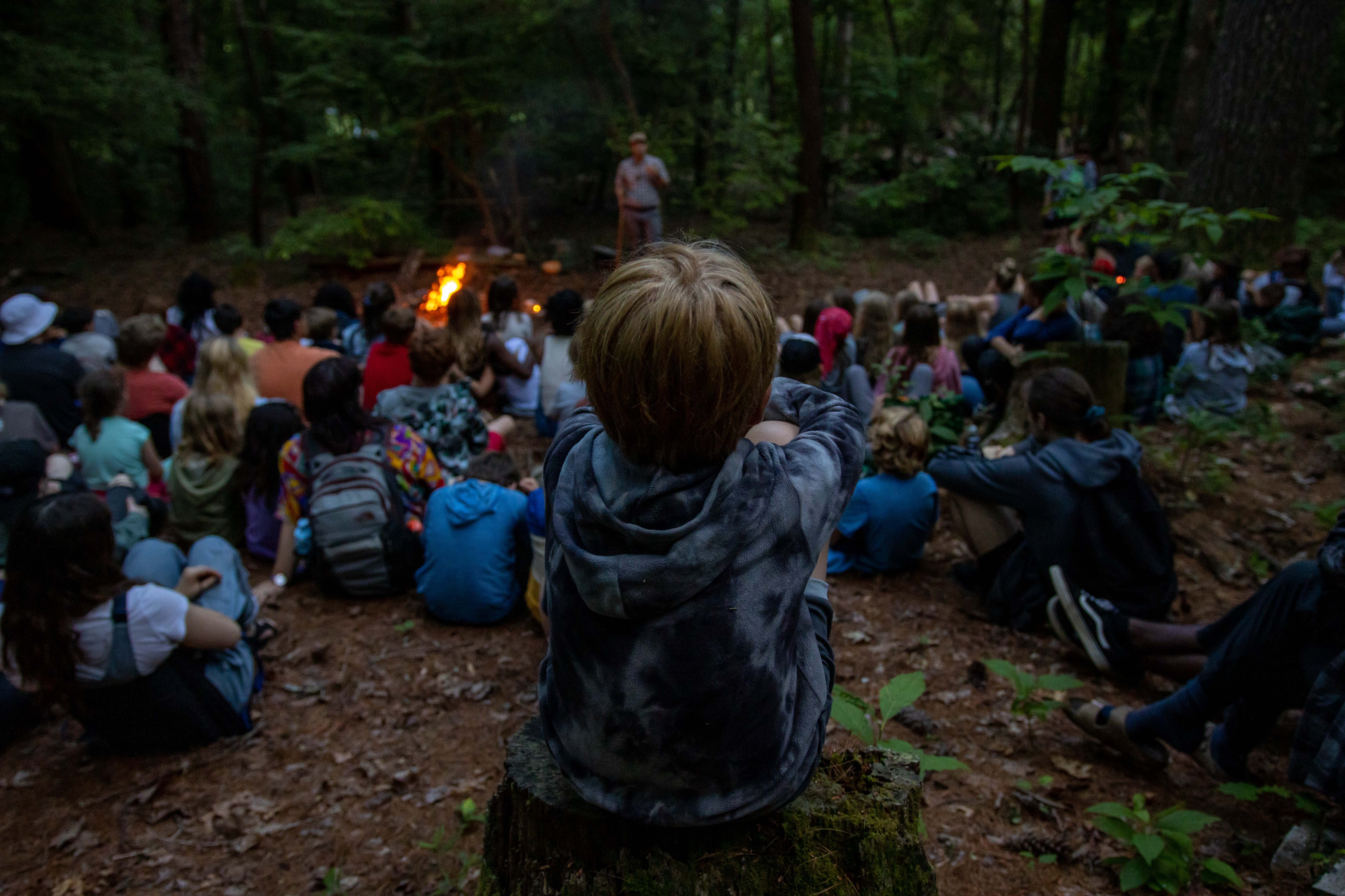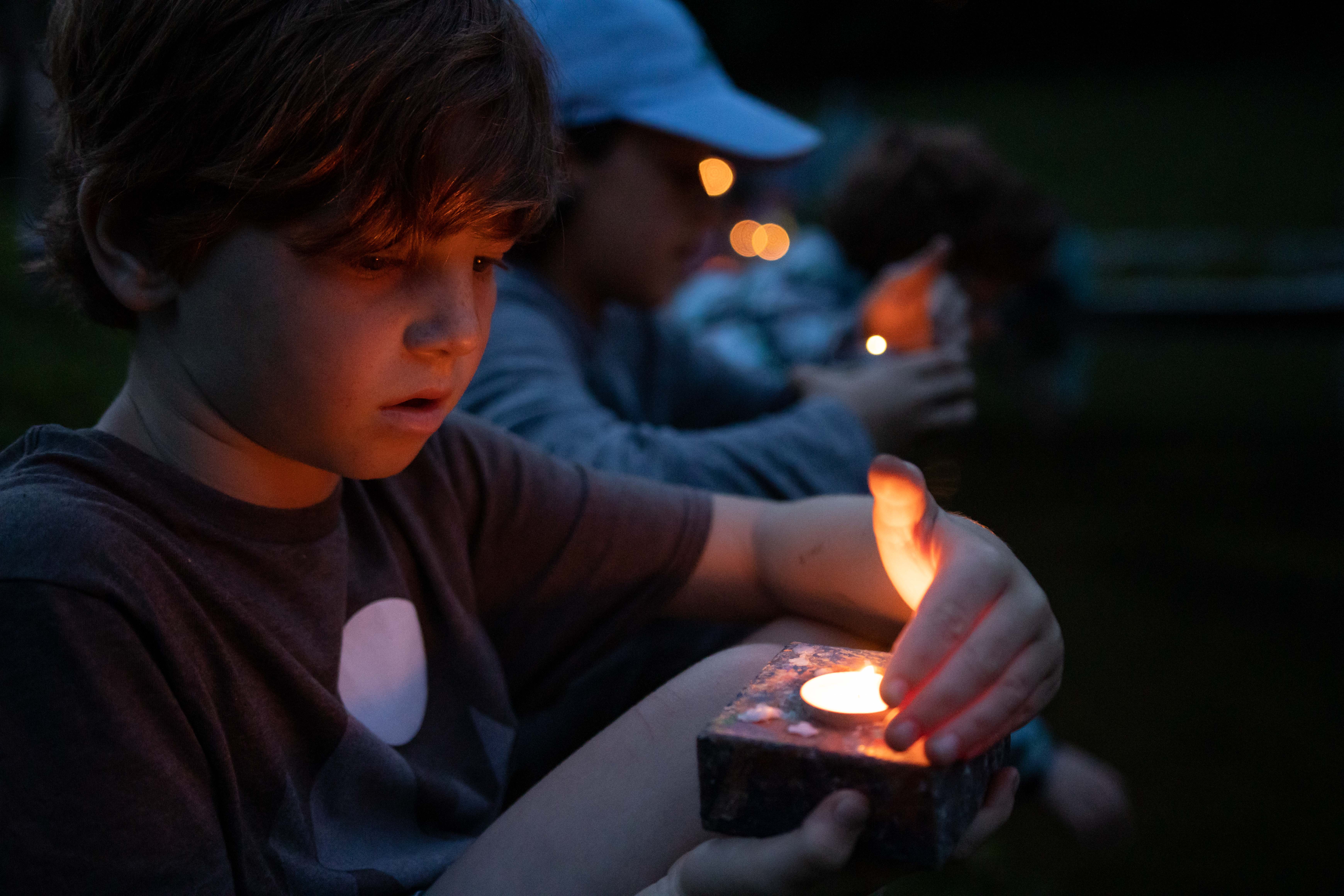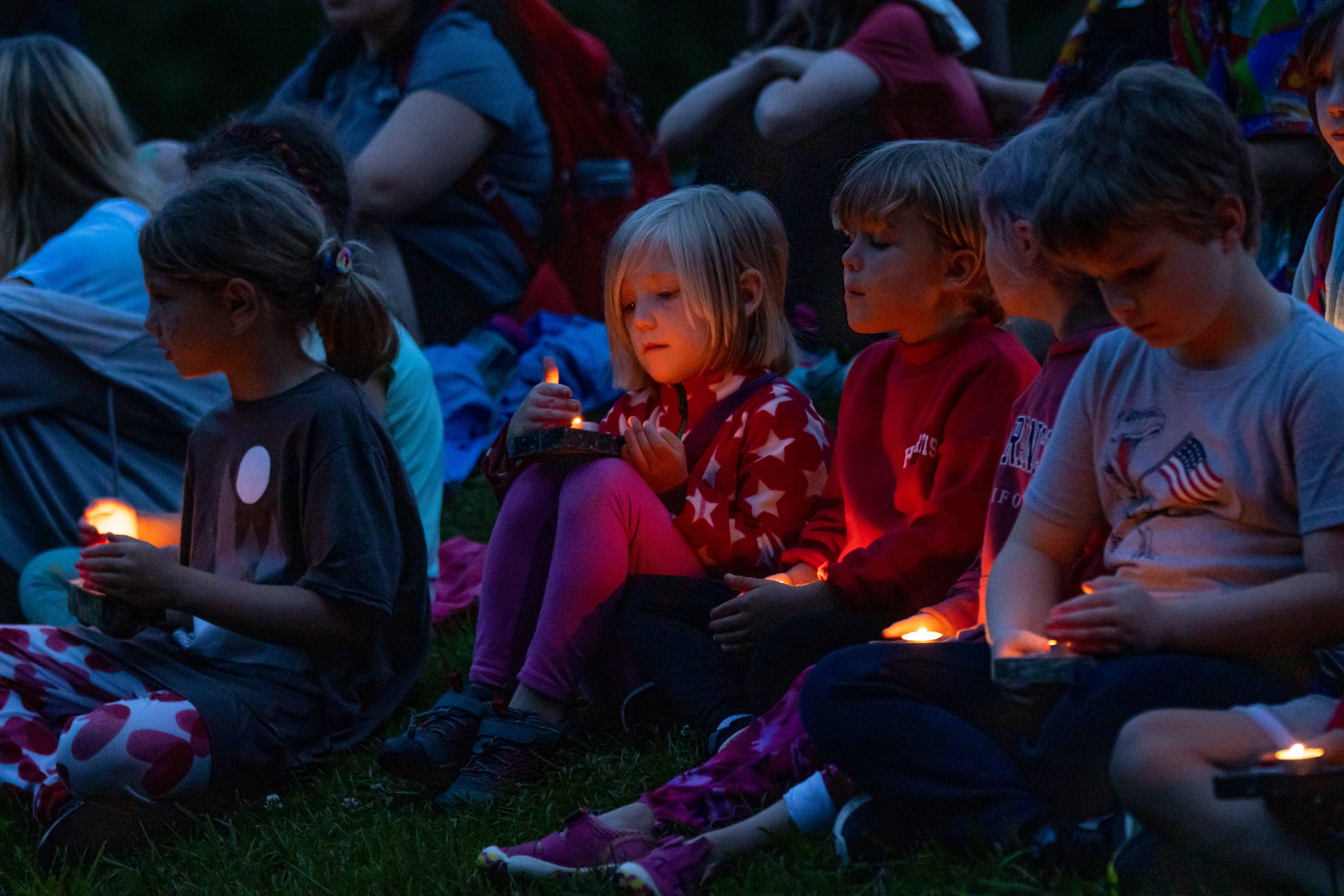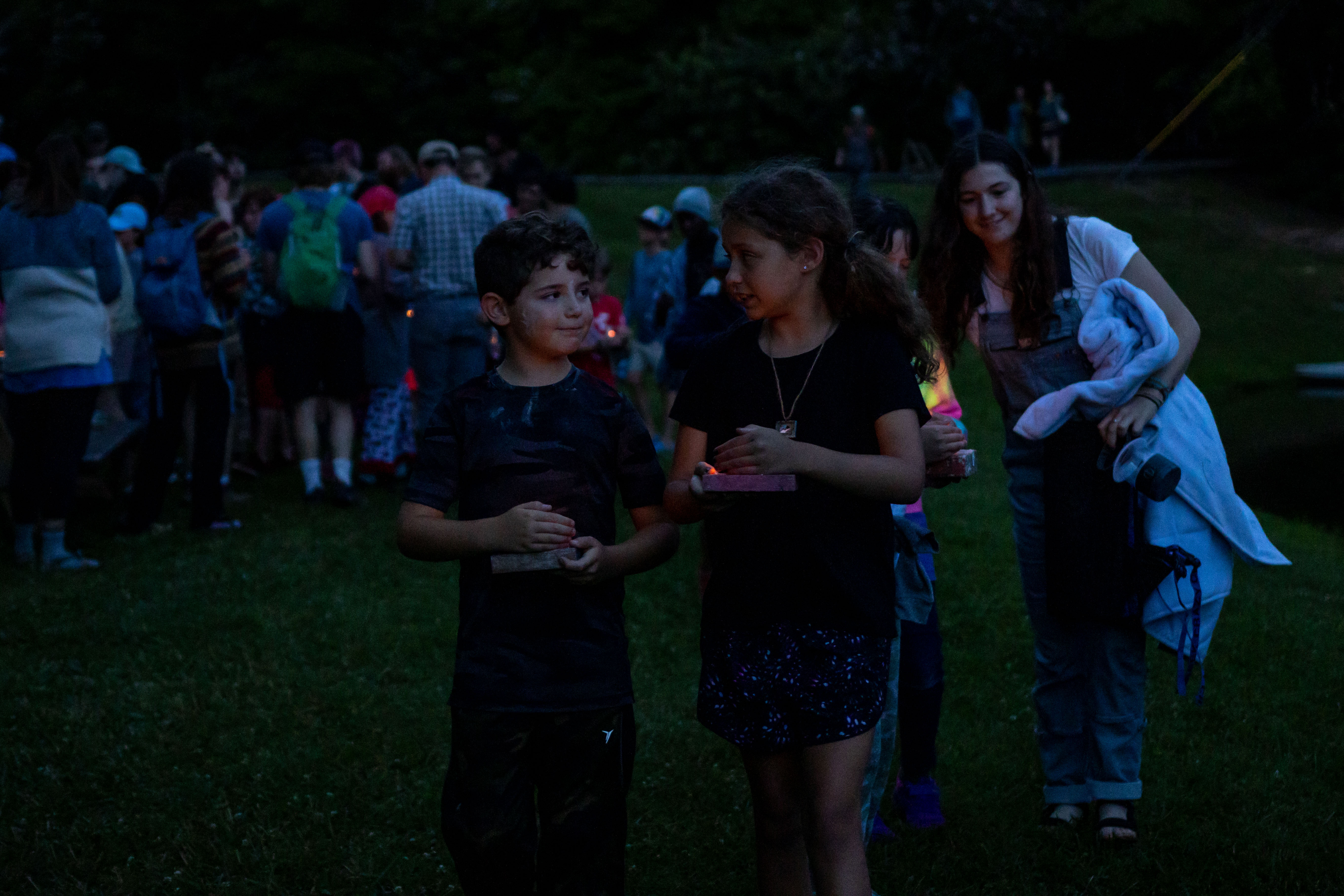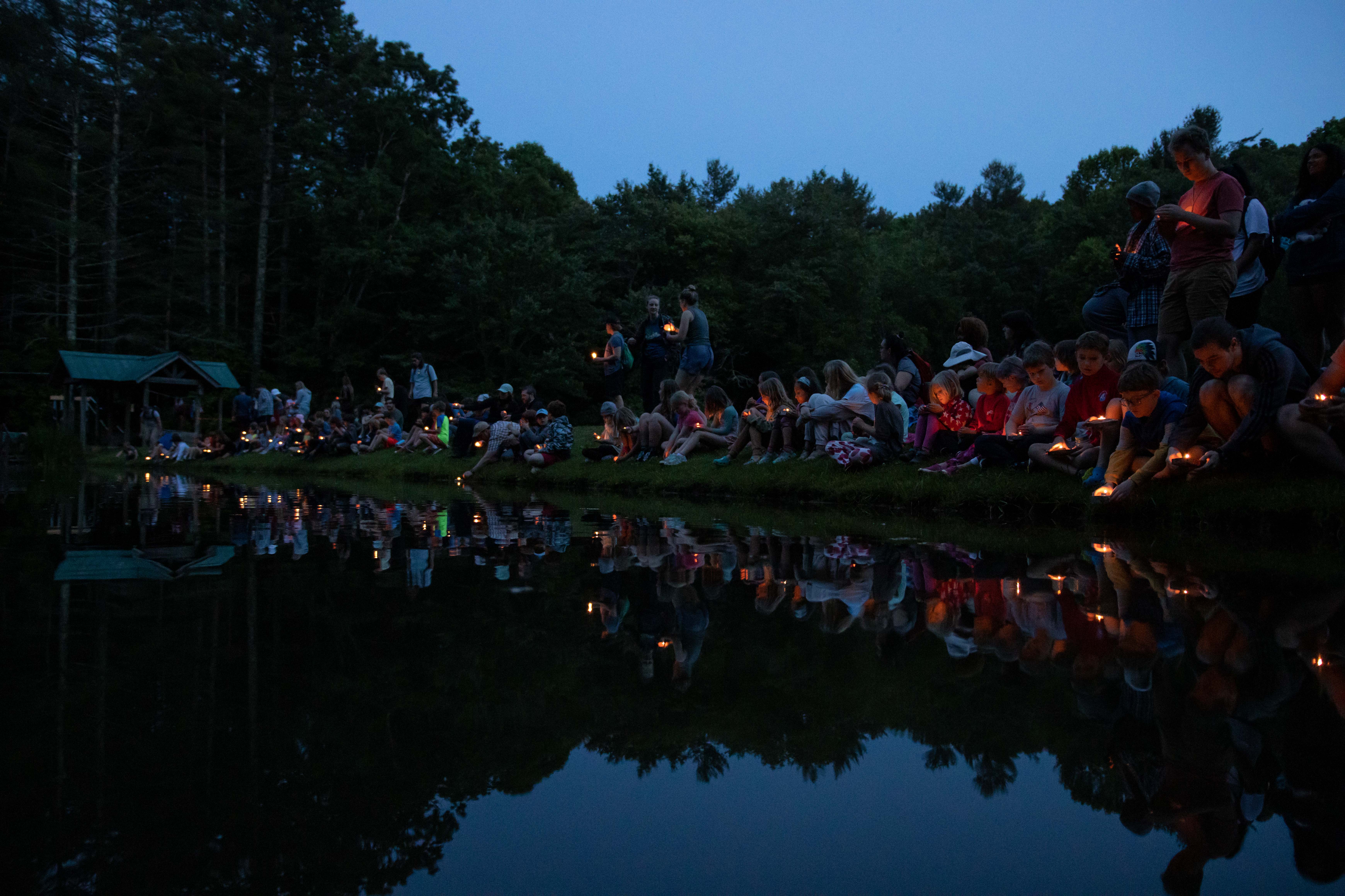 Last night during the final evening of session 1, we celebrated with a special banquet dinner, followed by an epic slideshow featuring photos of every camper, captured in their element. Afterwards, the peaceful walk towards a reverent Upper Council Fire gave us all a deep feeling of respect for this wonderful place and all of the people that surround us. With a few beautiful words from Steve we began to settle in. We listened to a reading of the Woodcraft Laws and Sandy’s Letter, set our Spirit Stones around the fire and were drawn into the tale of the turtles during a story told by Chris Paul. As the night drew closer to dusk, the Green River Ramblers played a few tunes before we all made our way to the lake, for the final act of the night, where each of us took part in the same moment, as one. With our little wishboat candles lit for the journey across the lake, we all embraced darkness and set forth our dreams for our own personal journeys by placing each gently into the calm water. While the glow of a hundred lights twinkled in the coming of true night, lightning bugs danced all around us in one final show of the real magic this setting holds.