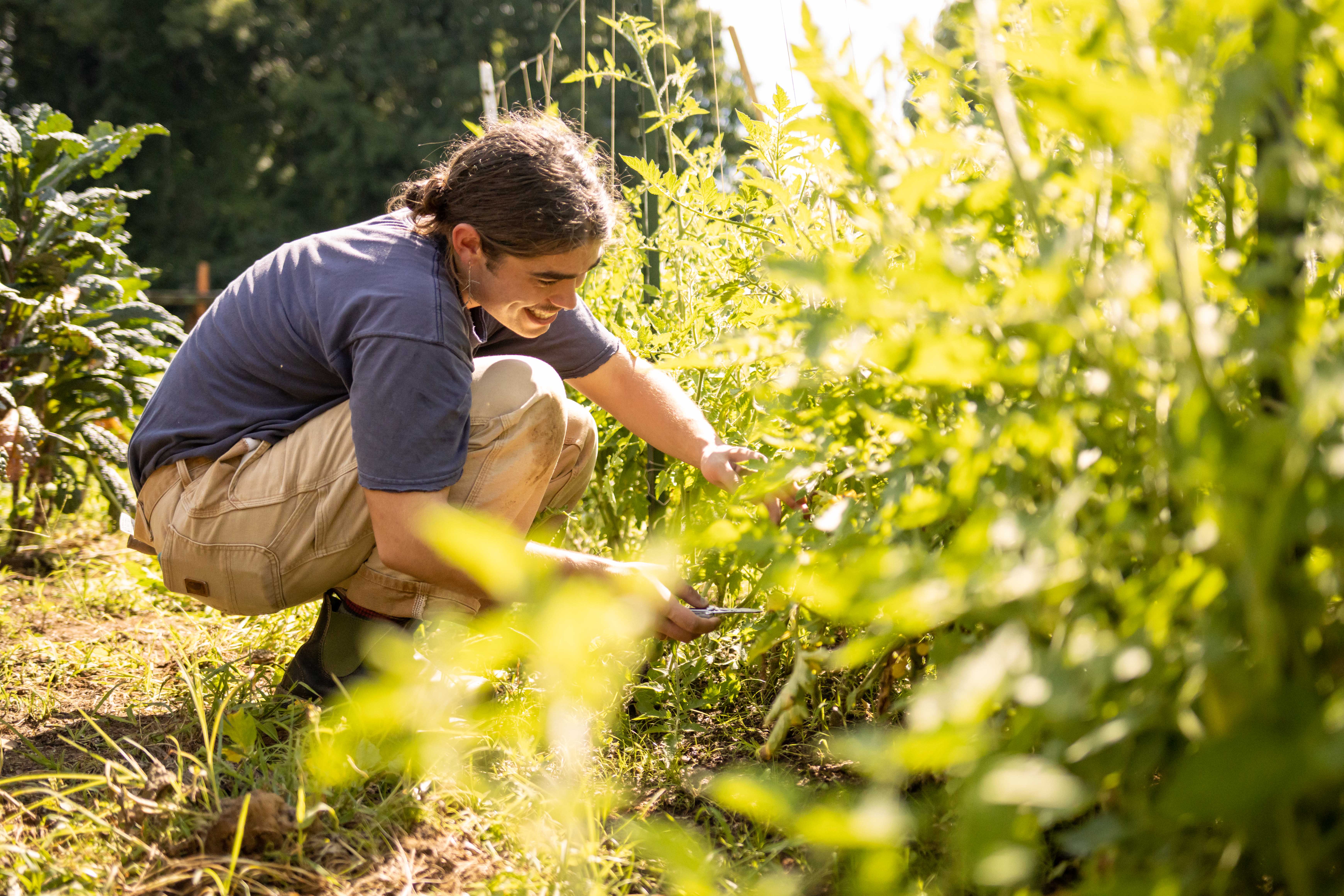 Green River Preserve’s farm, approximately five working acres, is only the second settlement along the Green River from its headwaters within The Preserve. Beyond it lie a dozen or so larger farms, many using industrial-scale equipment, pesticides, and herbicides. But the farm at GRP does things differently; there are no plows or harrows pulled behind tractors, no fertilizer spreaders or mechanized seeders. Instead, all of the weeding, planting, and maintenance are done by hand. This means that each plant is individually potted or seeded into rows that have been hand-constructed and -aerated using basic wooden and metal tools. The stirrup hoe clears the dense weeds and grasses while the broadfork helps us construct the rows and provide the soil with oxygen. The fertilizer that covers these newly-constructed rows comes directly from the compost on the farm, a concoction of food waste from our basecamp kitchen, hay and cardboard for added carbon, and water to accelerate the entirely solar-driven decomposition process.