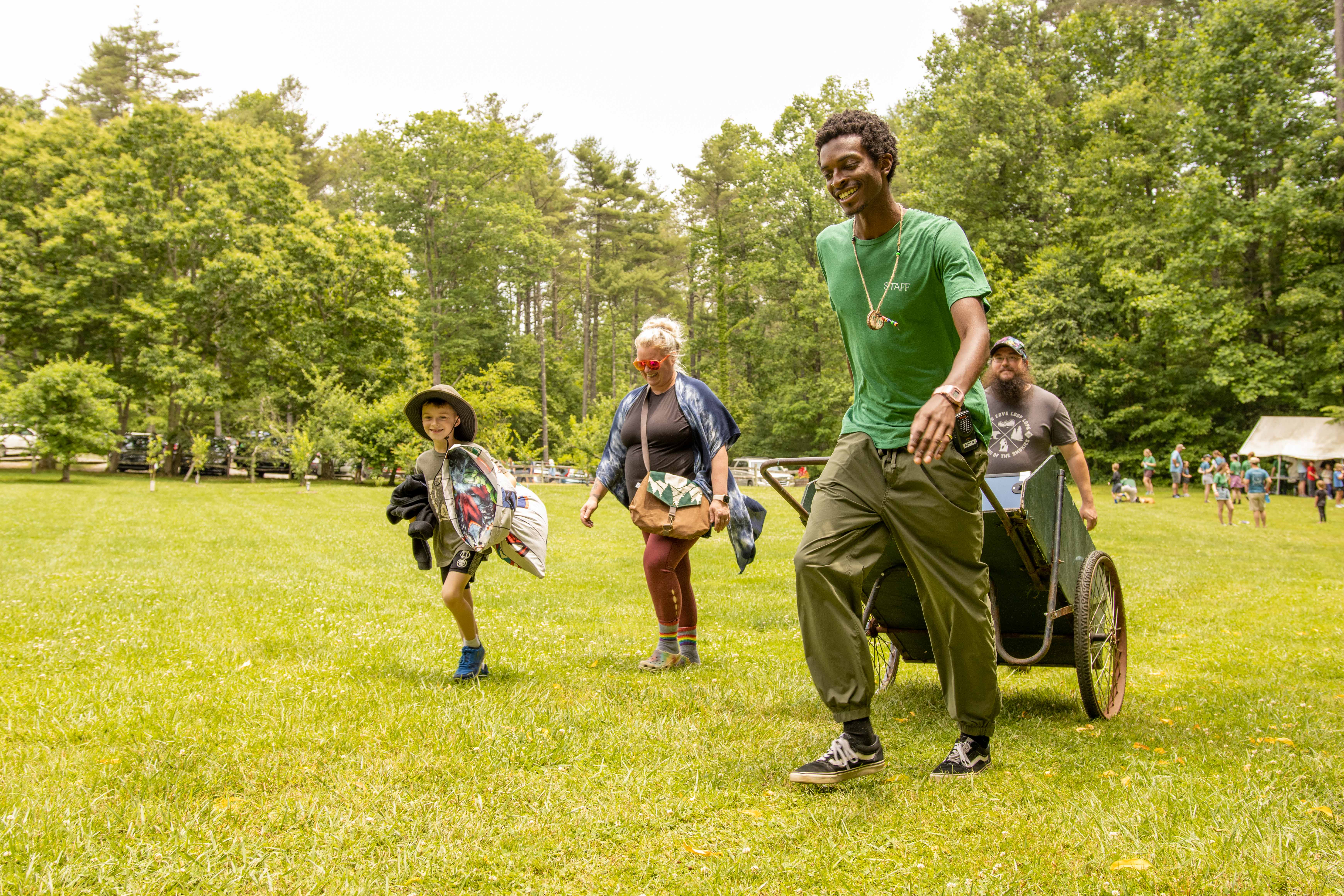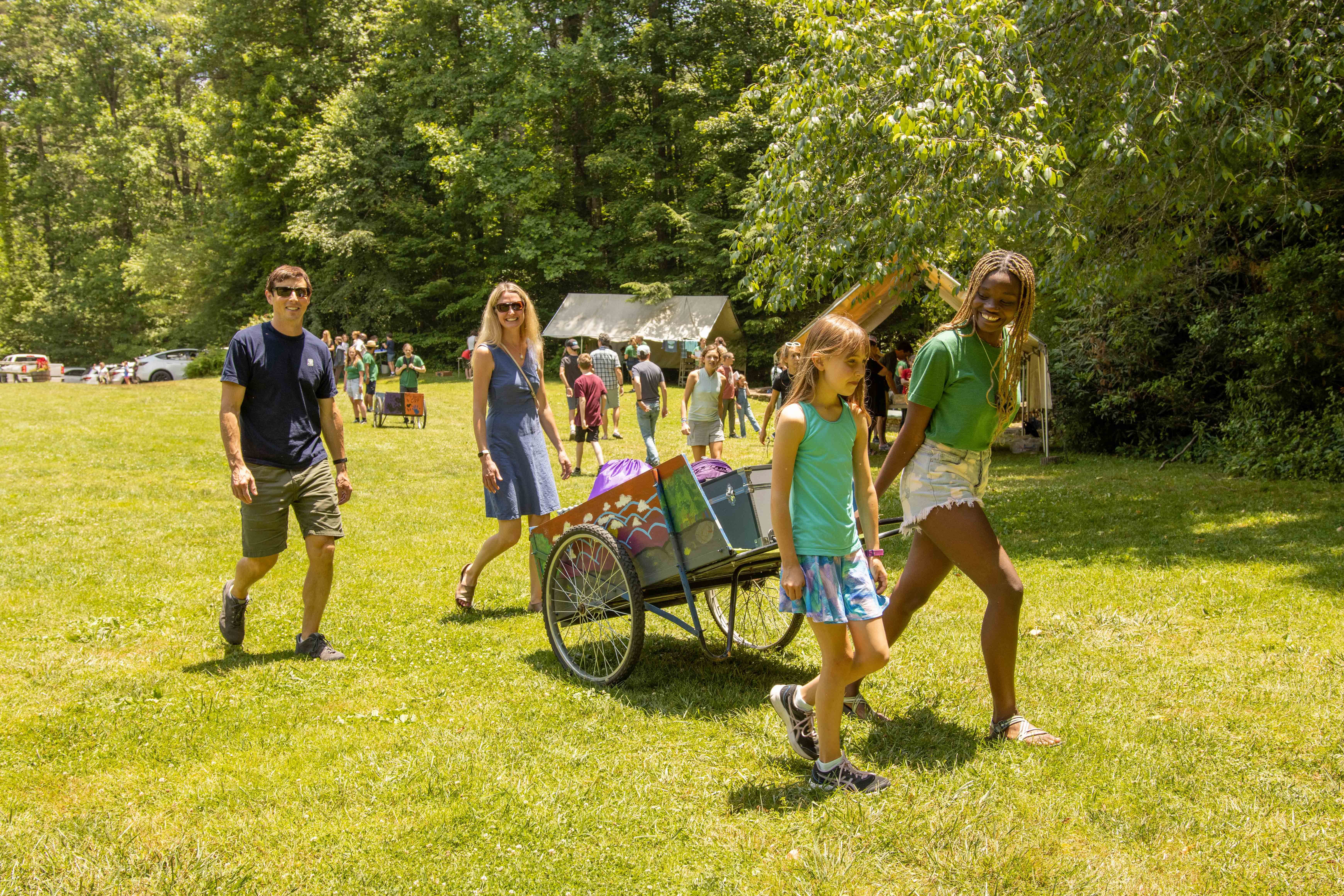 Once you reach our entrance, you’ll be greeted by several of our friendly staff members. They will direct you into our parking area and let you know what your cabin assignment will be! Once your car is parked, staff will help you load your camper’s belongings into a cart.