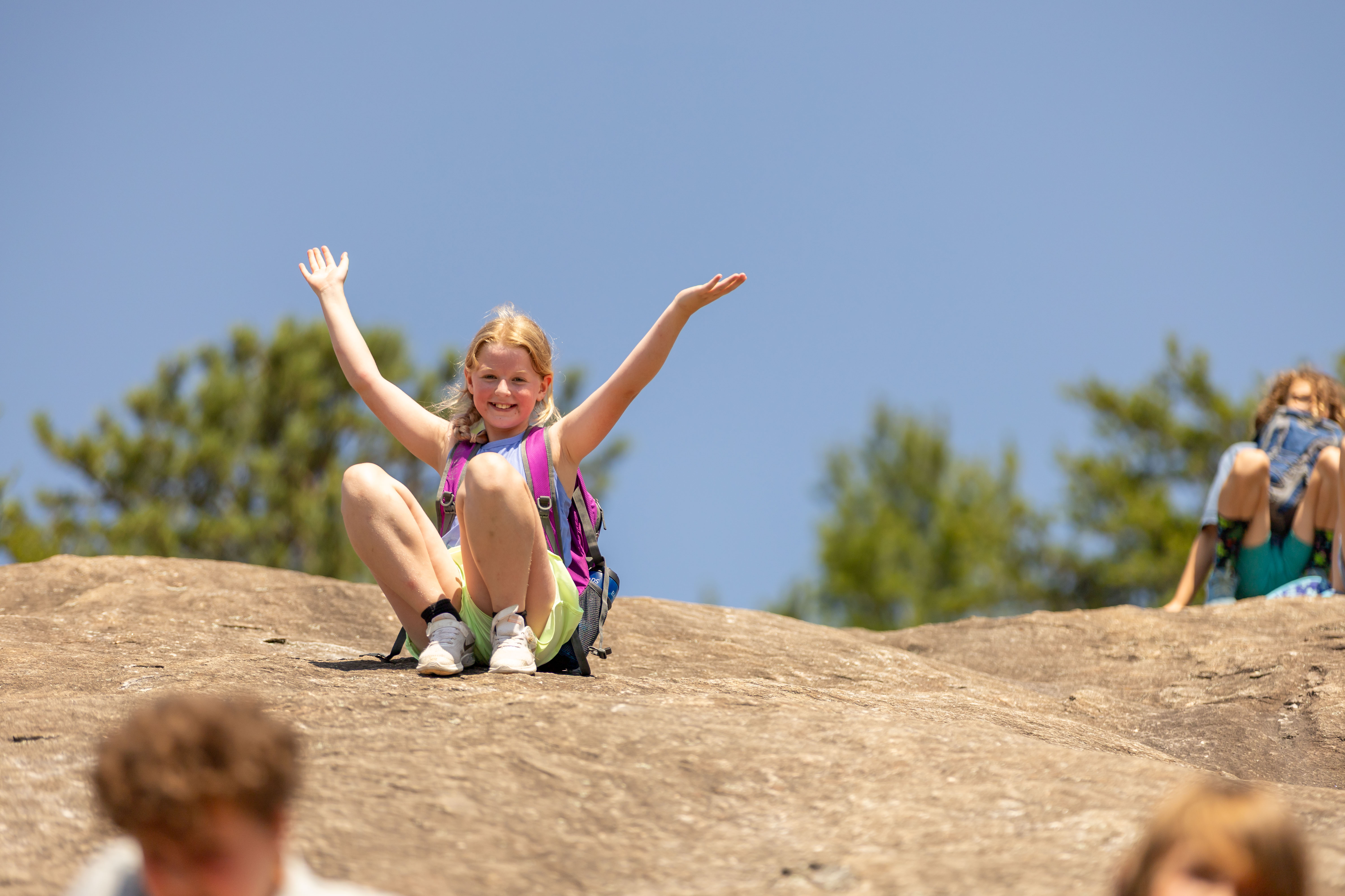 Today, our adventurers embarked on Mentor Hikes, led by naturalists who blend ecology, folklore, and outdoor skills into each step. As Campers crept along the forest floor, they spotted mushrooms and ferns—but their eyes truly lit up when they discovered two timber rattlesnakes–one coiled beneath a rock on Upper Bald, and one right on the path towards Lower Bald. Under calm, expert guidance, kids learned to read the warning rattle, respect safe distances, and appreciate how rattlesnakes control rodent populations. In that moment of awe, empathy took root: Campers walked away not only with thrilling stories but with an understanding that every creature—even one that hisses and rattles—belongs in the web of life.