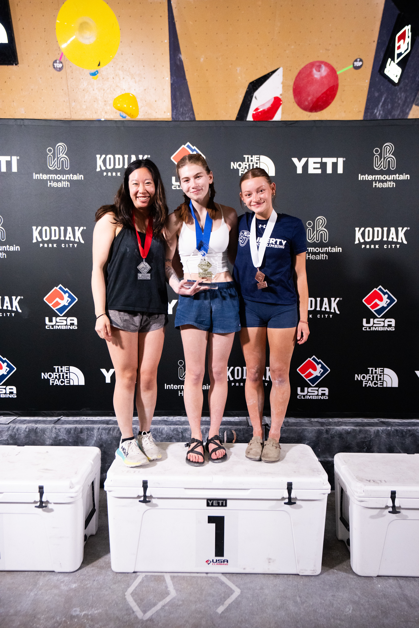 I step off the podium that night as the 2025 Collegiate Women’s Intermediate Bouldering National Champion. I collect all my gear that is strewn throughout the venue, and I follow my mom back to the rental car. As soon as the doors close, I call Courtney. GRP magic washes over me in waves.