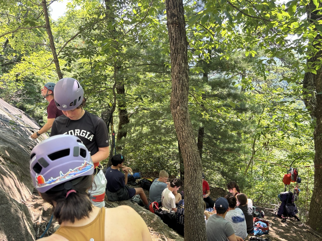 Linville Gorge expeditioners receive 2 days of professional rock climbing instruction from Pisgah Climbing School, staffed by American Mountain Guides Association (AMGA) accredited climbing instructors. This professional partnership ensures your child learns proper climbing technique, safety protocols, and confidence-building skills from some of the best guides in the region – all within the supportive community of their GRP expedition team.