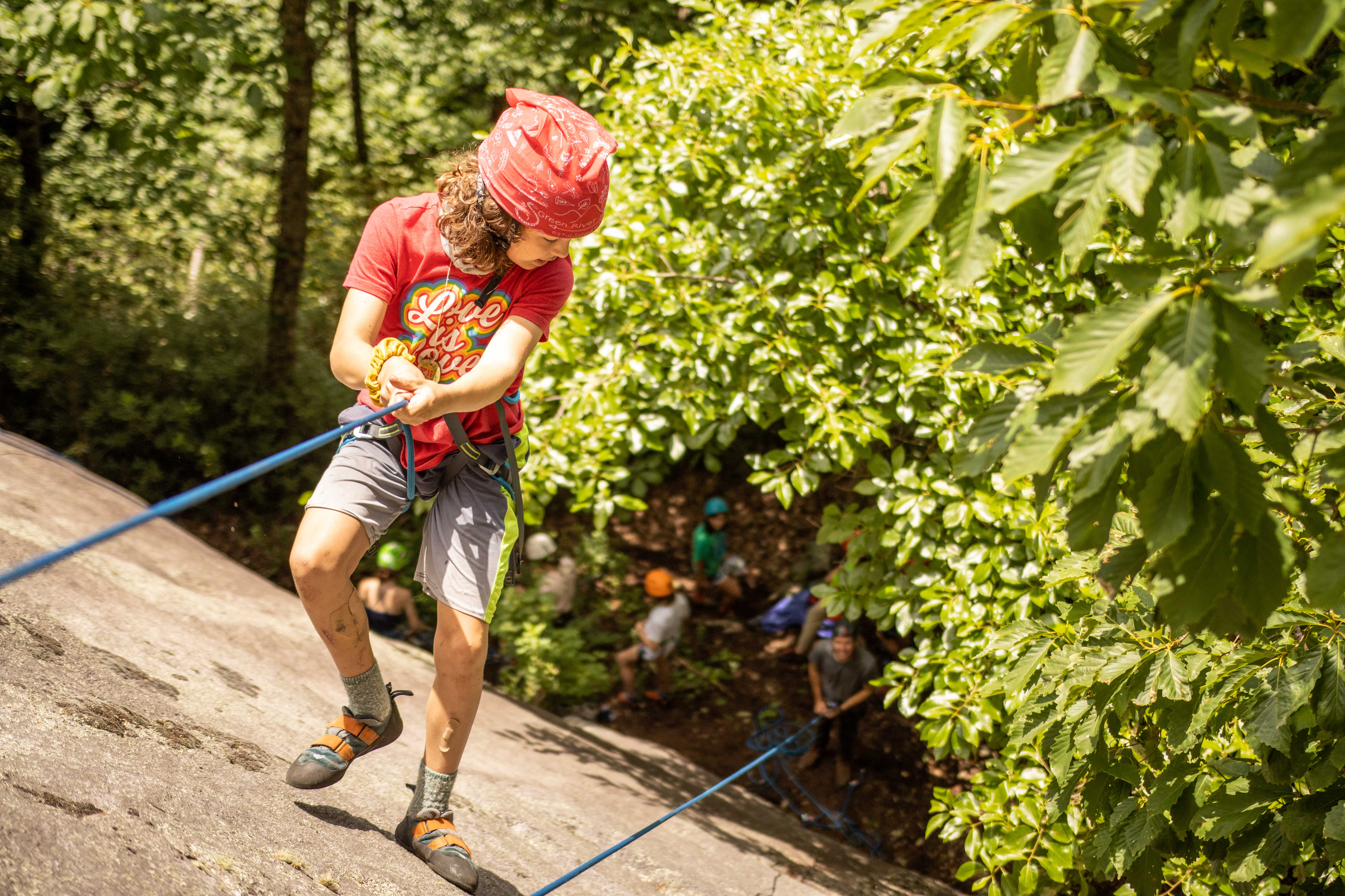 Green River Preserve base camp is located on 3,400 acres in Western North Carolina. In addition to having our own climbing wall and bouldering cave, GRP has established beginner to advanced routes on our property. Campers will have private access to these places as well as the option to explore beyond our property into the greater Western North Carolina mountains. Our property and access make this an ideal environment to learn and further develop rock climbing skills while also having a blast outside with a great community.