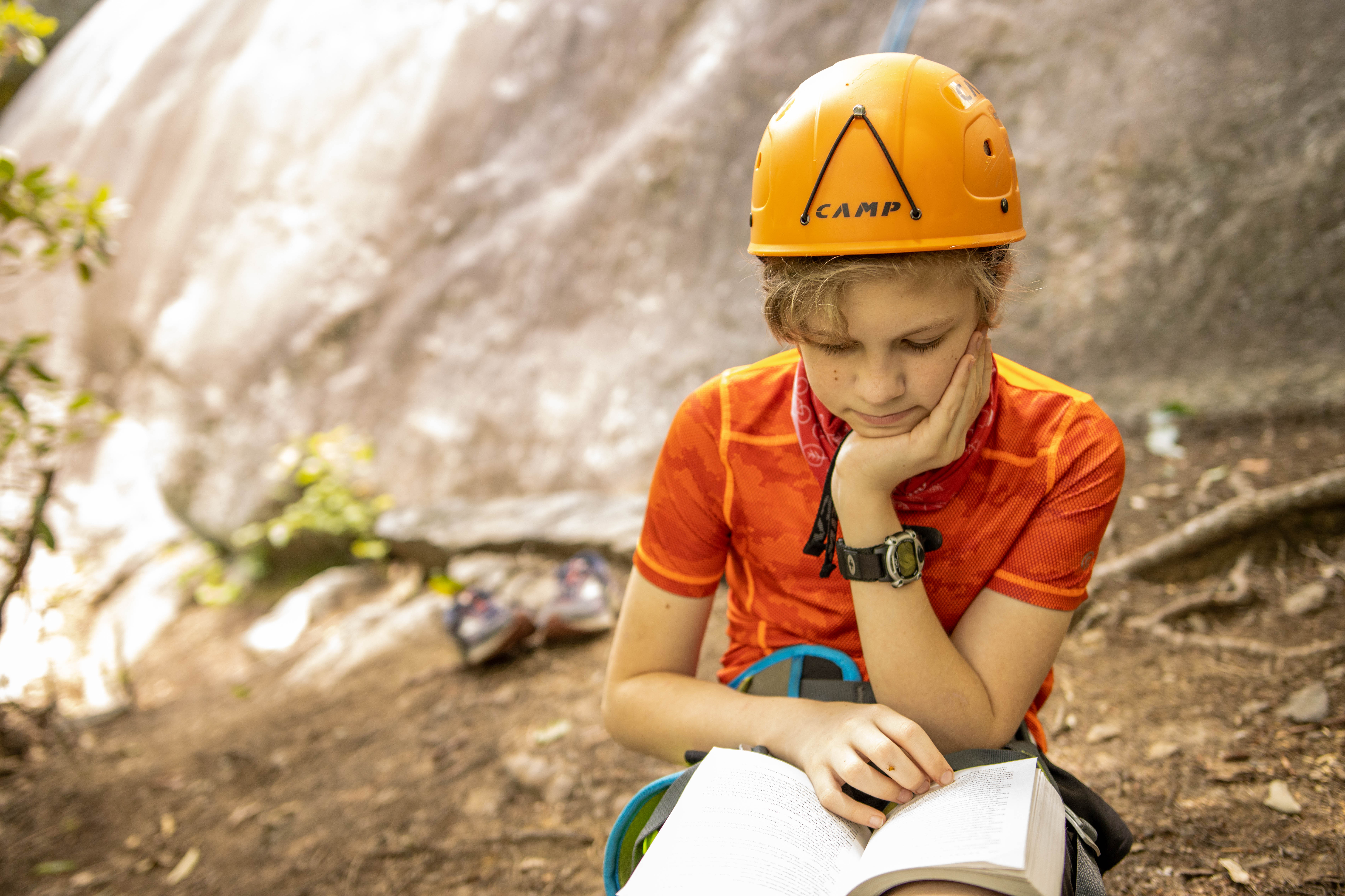 The Rock and Read Base Camp Expedition is a 1-week session focused on further developing safe and supportive rock climbing skills, while also spending some downtime reading our favorite books. Climbing is offered during all of our base camp sessions, and because of its high demand, GRP is offering this uniquely focused program for campers who love climbing and want more time on real rock. This Base Camp Expedition is perfect for campers who have enjoyed climbing and want to do more, including spending every day developing these skills.