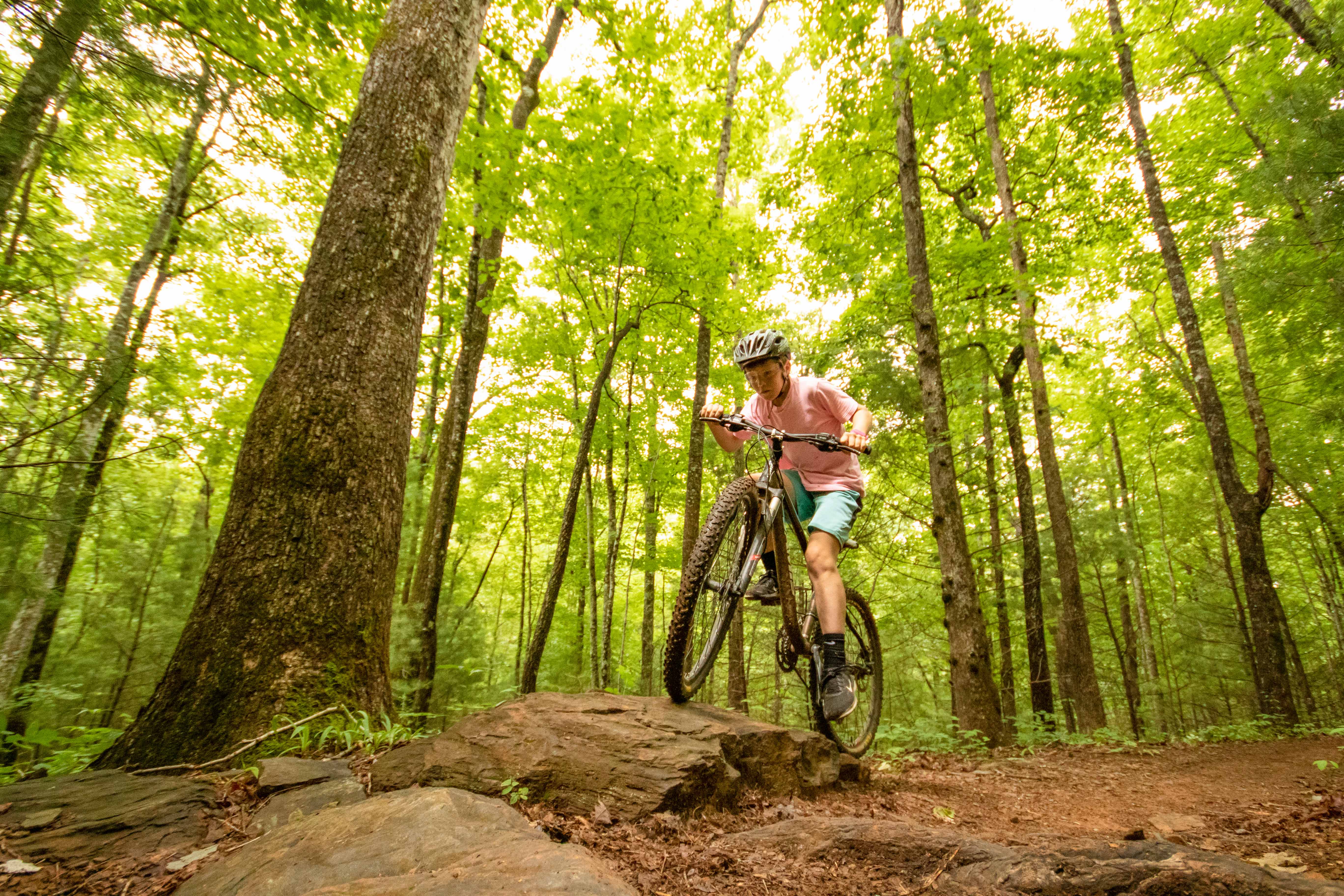 Green River Preserve base camp is located on 3,400 acres in Western North Carolina. In addition to having our own, private mountain biking trails and training course, our property neighbors the mountain biking mecca, Dupont State Forest. GRP campers have the luxury to ride out the backdoor and explore miles of incredible terrain. Our immense access gives us the ability to progress at the group’s speed and adventure from beginner to advanced trails. Our property and access make this an ideal environment to learn and further develop mountain biking skills while having a good time on the trails.