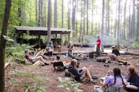 The Blue Ridge Expedition’s base camp home is next to the continental divide, tucked in beside Reasonover Creek in a wonderful micro-climate where summer temperatures rarely get uncomfortably hot. The heart of this Expedition’s home is a large group shelter which provides space for programs, meal preparation, and a campfire setting. To the east and west are two different sleeping shelters. These shelters are elevated off the ground and have canvas walls to protect participants from the elements. A leader stays with the participants at each site. Both of these shelters are a short walk from the group shelter.